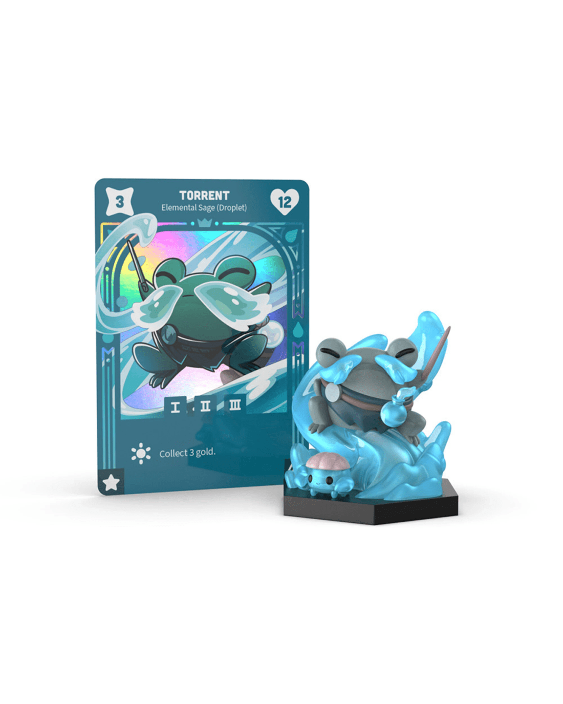 This vinyl figure features Torrent the Droplet Sage from the board game Command of Nature.