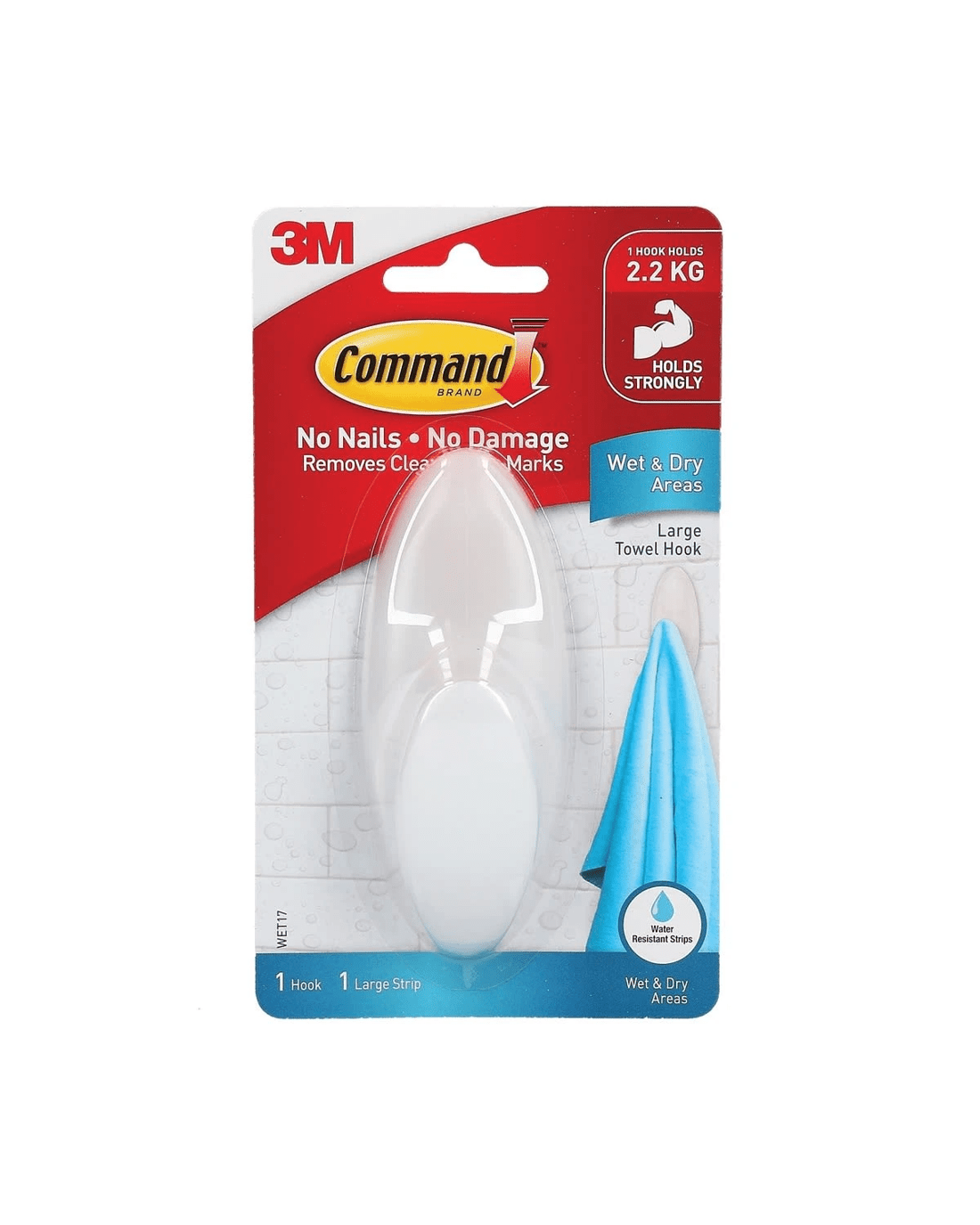 Tame the tub and contain the clutter with the Command wet area hook! Easily hang and create space while keeping things within easy reach. It will allow you to keep towels or robes off the floor and hung up neatly so they can dry in between use. This hook can withstand hot, wet and humid environments and stick to a variety of surfaces. Tested and proven to hold better than suction cups, it is easy to apply and comes off cleanly without damage.