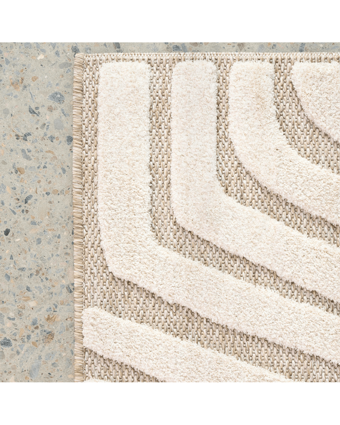 Bring refined elegance to your home with the Belmonte collection. Each rug features a harmonious blend of geometric and organic patterns, including intricate borders, delicate small squares, and fluid swirl designs. Crafted in soothing neutral tones, these rugs integrate seamlessly into any setting. The unique high and flat weave construction adds depth and texture, offering a plush and luxurious feel underfoot. Perfect for a variety of interior styles, from modern to classic, the Belmonte collection enhances your space with its inviting yet sophisticated presence, making it a timeless addition to your decor.
