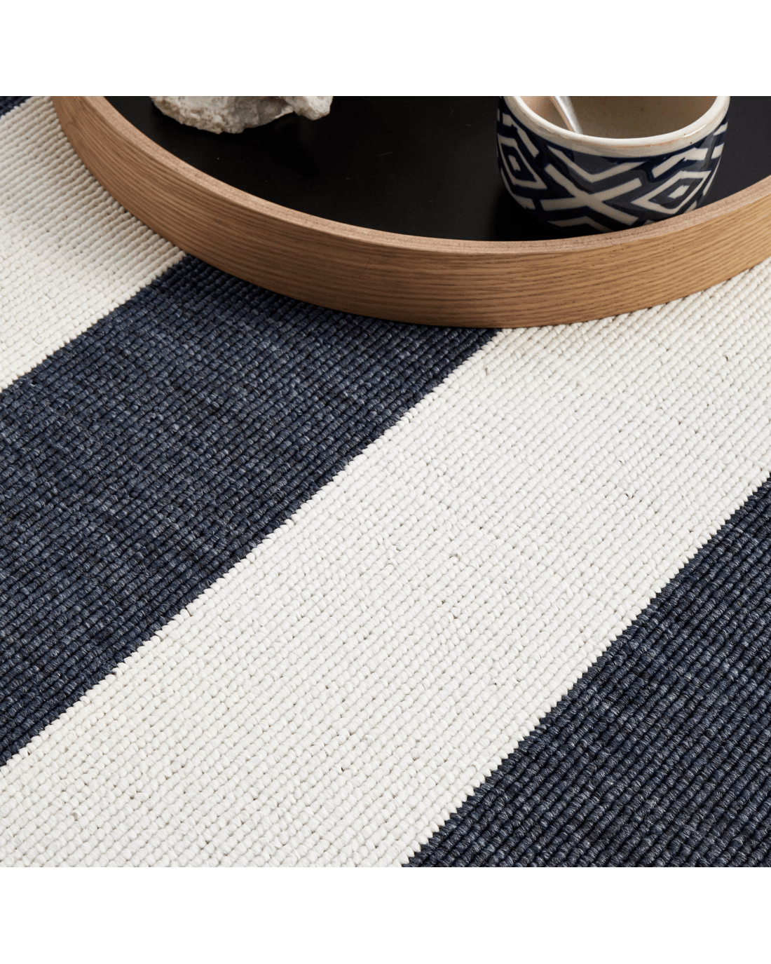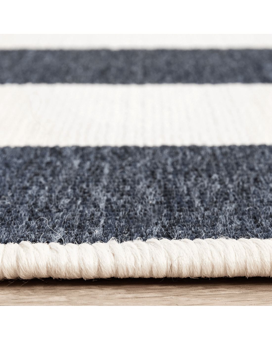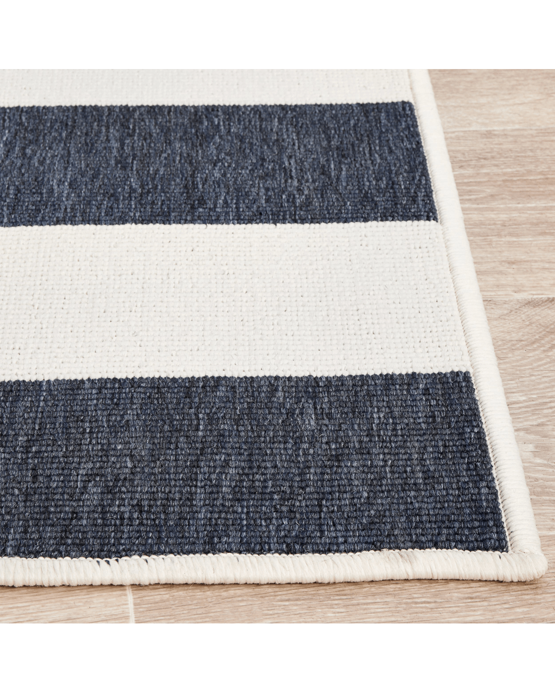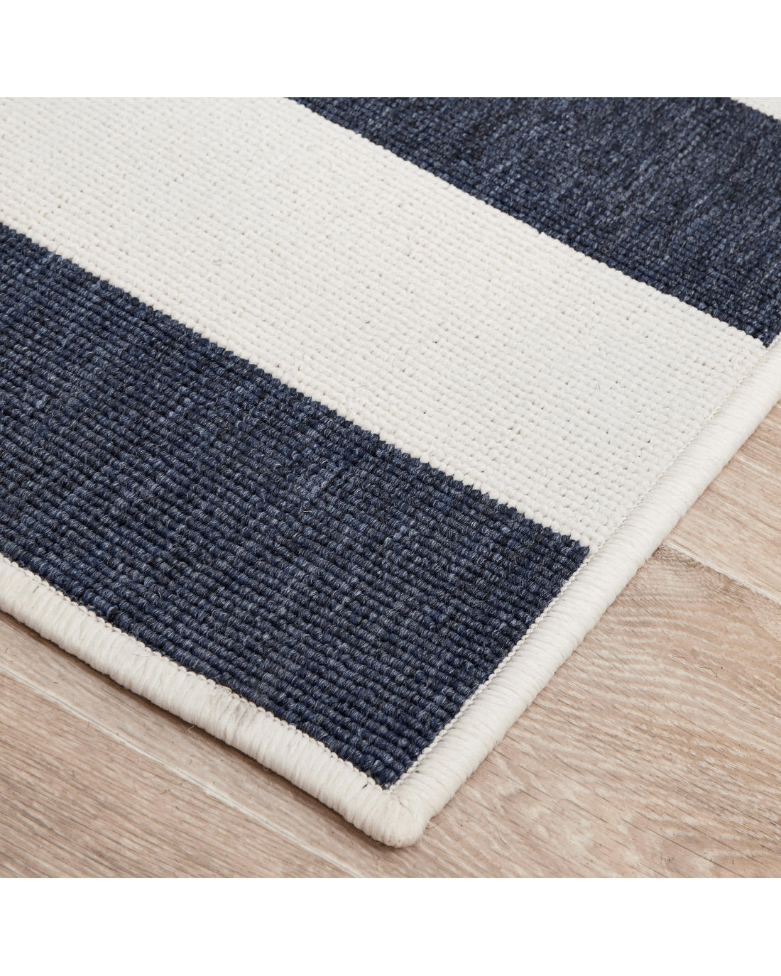 Navy and white stripes create a bit of nautical flair, bringing a coastal look instantly. This easy-care collection is designed to be used outdoors as well as indoors, these rugs are water resistant and will add an element of fun to any space. This short, easy to clean pile made from durable polypropylene and is power loomed.