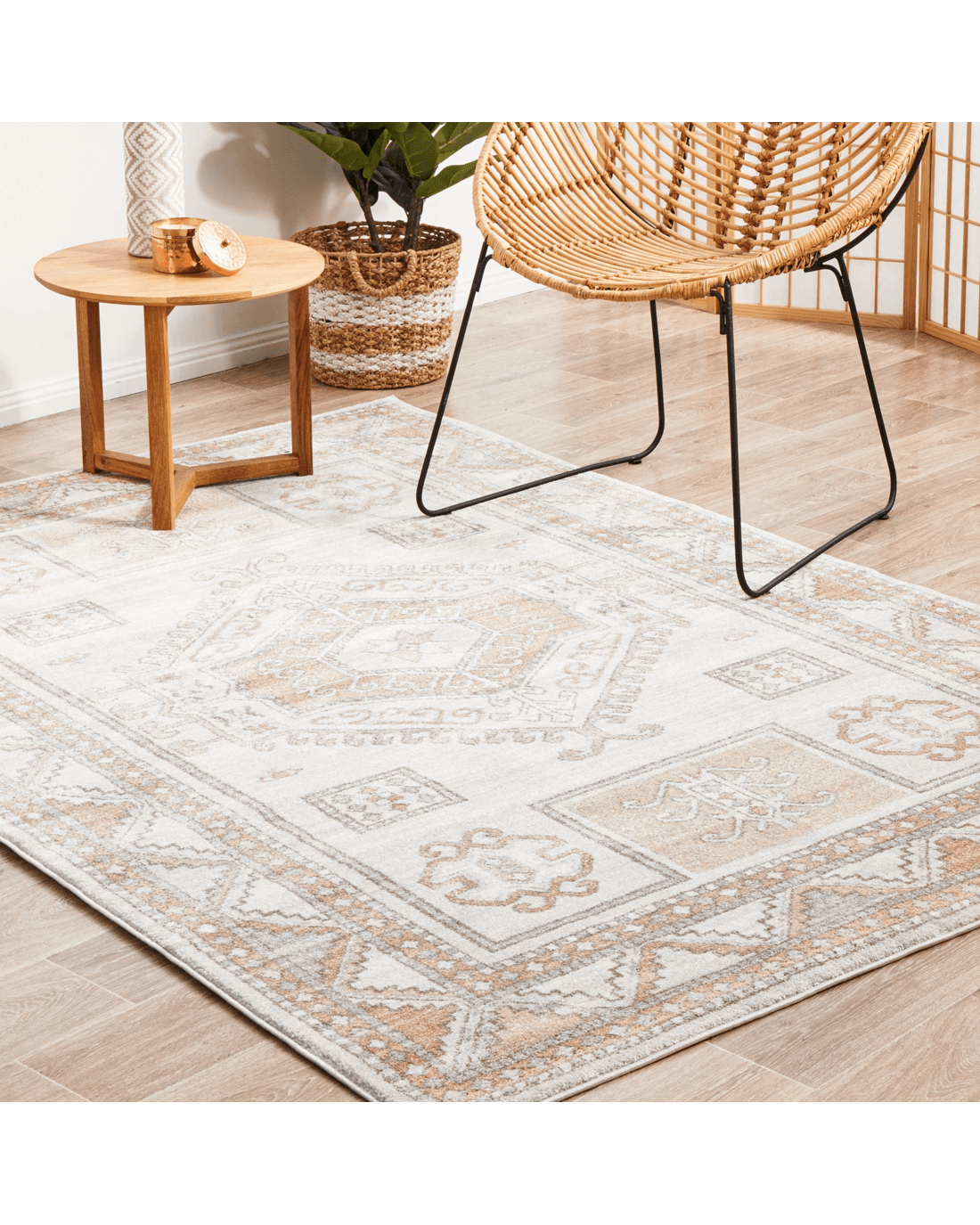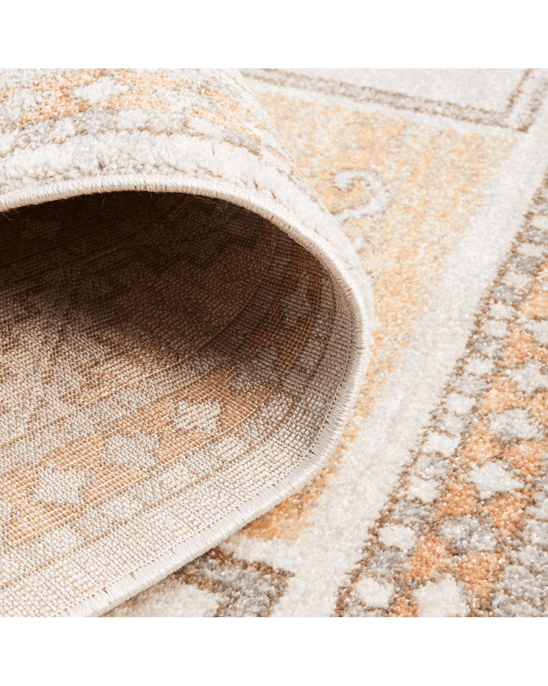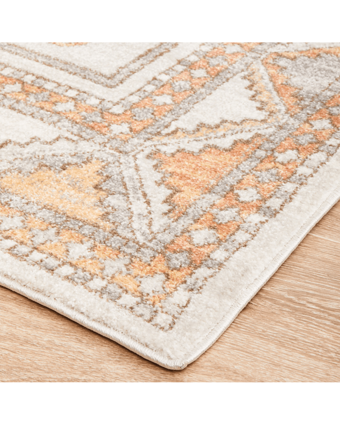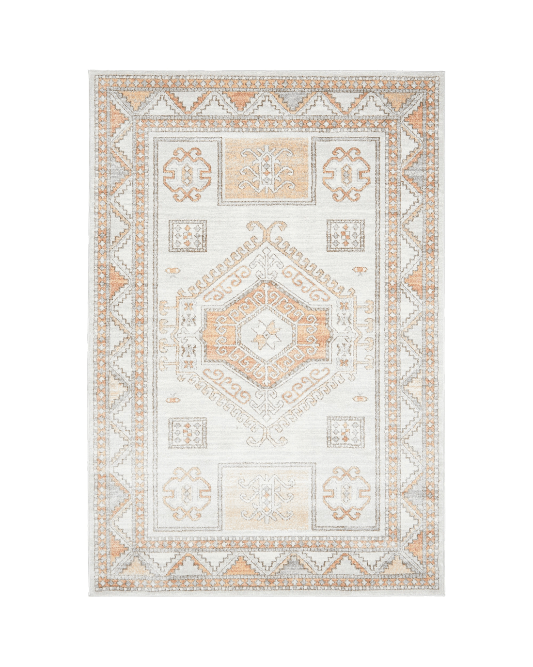 The softest hues flow through this gorgeous Aztec design. Different shades of warm peach pop out of the cool grey background. Power loomed with a polypropylene pile, this rug is non-shed and easy care. These rugs offer style, versatility and are available in rectangles, rounds, and runners in a large variety of sizes.