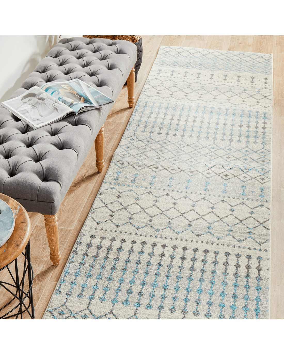 If you're looking for ways to decorate your hallway without spending too much, this is what you are looking for. The Encore Slate White Transitional rugs lend a traditional charm to your ensemble with a Persian-inspired motif in hues of grey and white. It presents multiple displays of geometric patterns, trellis design and serrated motif on a dark tone hue. Made in Turkey, this one is constructed from polypropylene, a popular material in rug production due to its high resistance to stains, fading, and moisture.