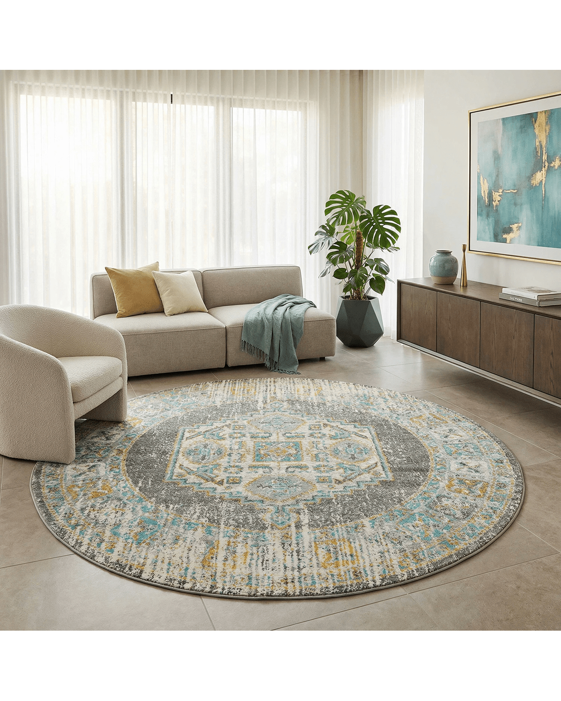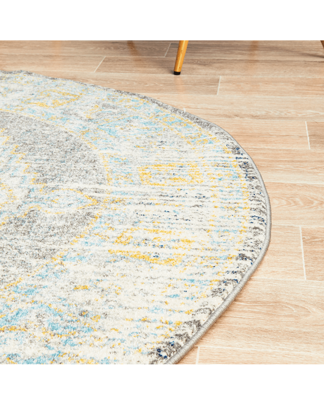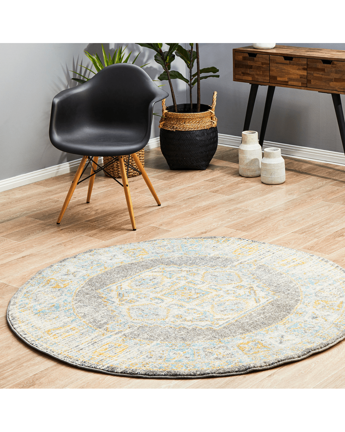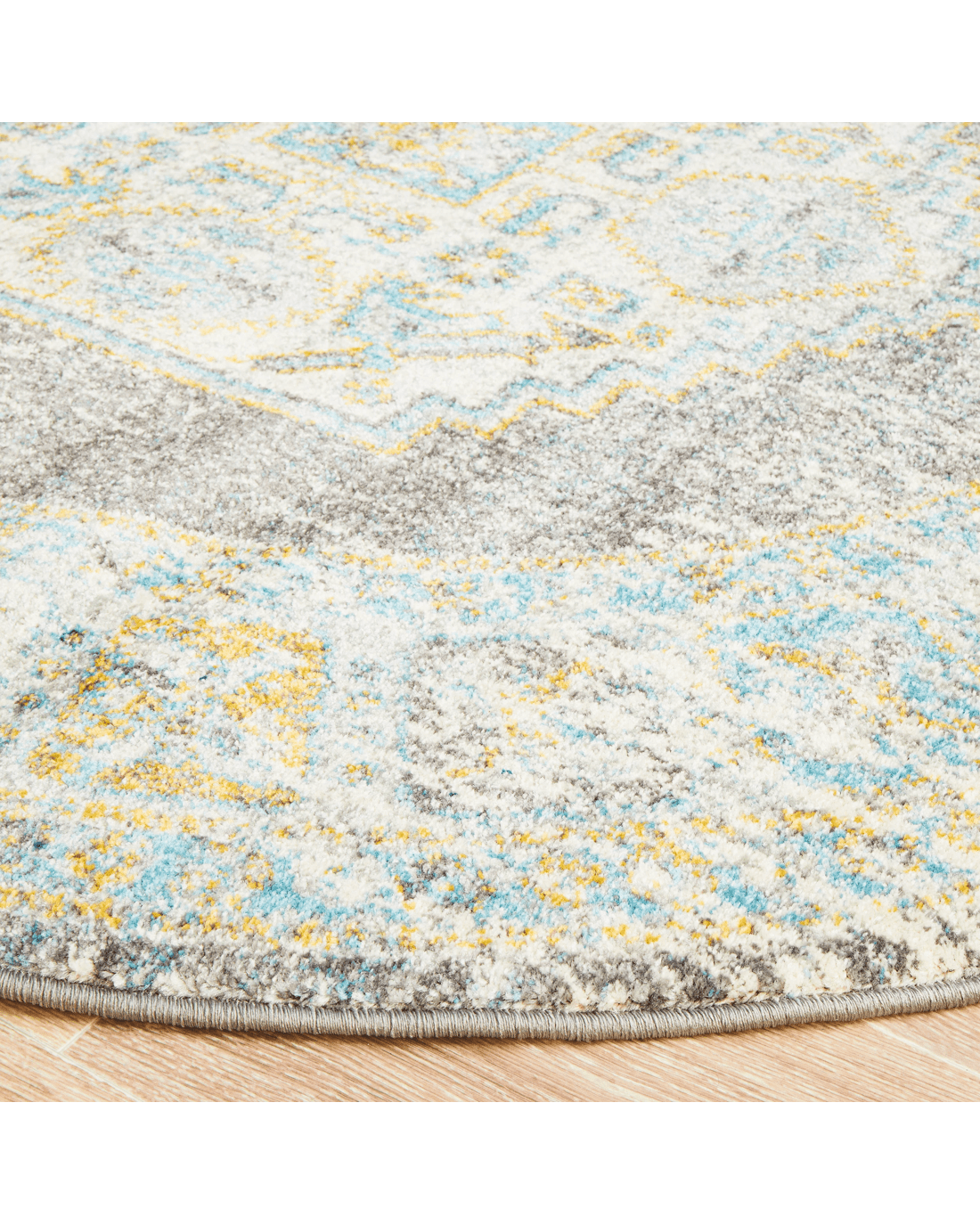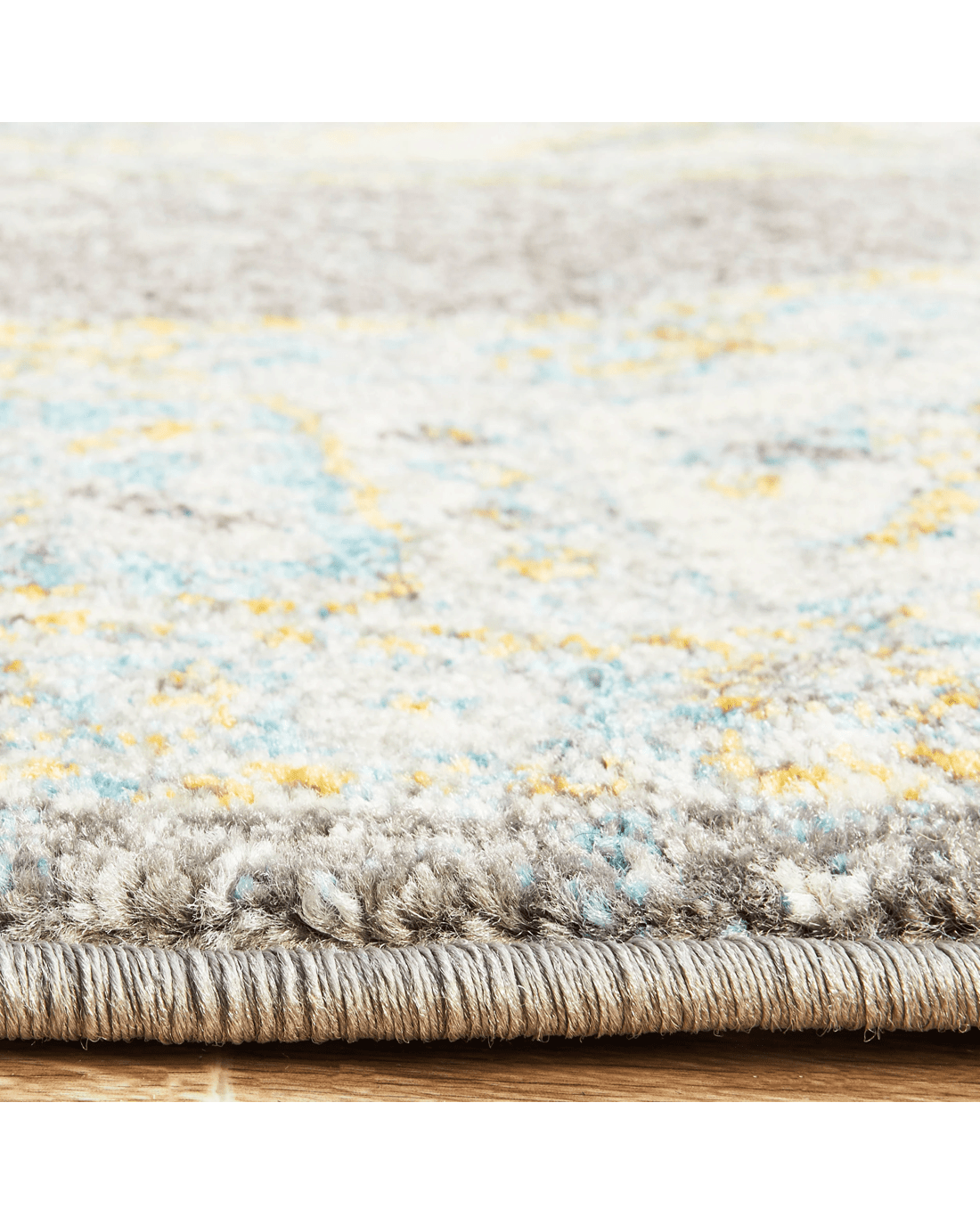 New age, modern designs fuses with classic beauty with the Era Collection from Turkey. This mesmerizing work of art is power loomed of 100% polypropylene materials for perfect durability and stain proofing. Sparkle and bring out the best in every household or room with this one of a kind rugs, duly crafted and blushed with a grey mainstream context and sporadic geometric patterns tinted in marine and sunny tune. Extremely high-quality construction ensures its unique design is clear and defined making it luxurious and sophisticated.