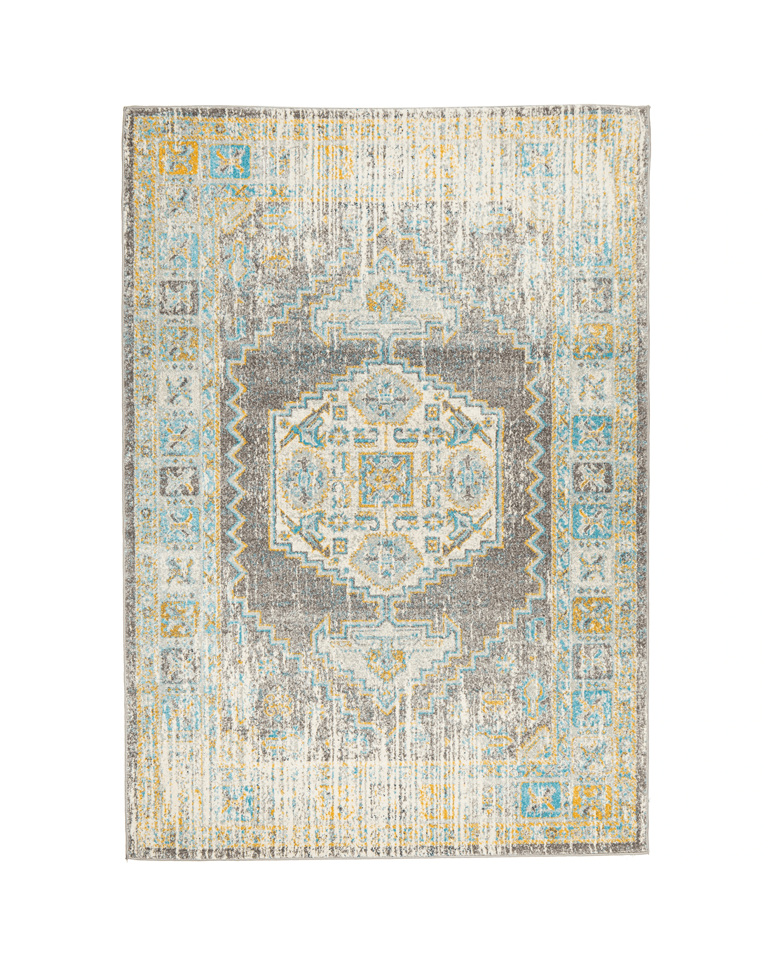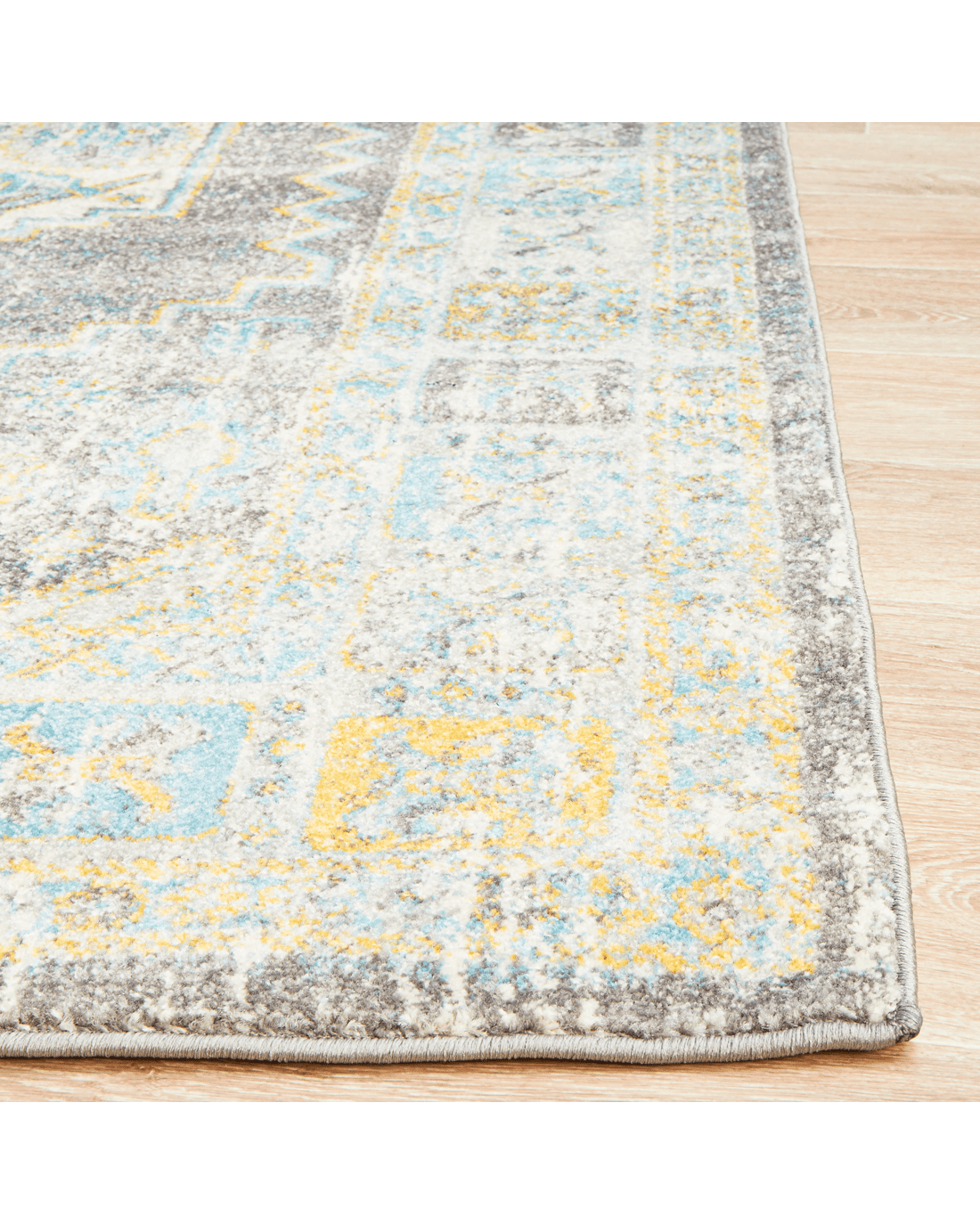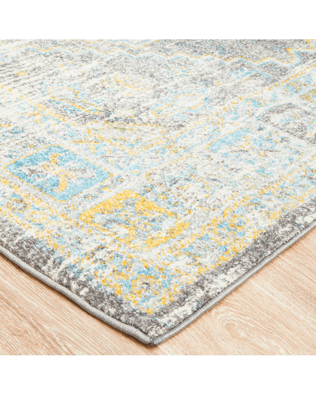 Era Rugs bring forth the traditional ancient inspired rugs yet create a dazzling display which fit every home and spaces. The Era Silver Rug is a nice addition as it features grey mainstream context and sporadic geometric patterns tinted in marine and sunny tune.. Power-loomed for a marvelous rug to beautifully accentuate modern decor while maintaining level of comfort and durability to any hard-surfaced floor and underfoot.