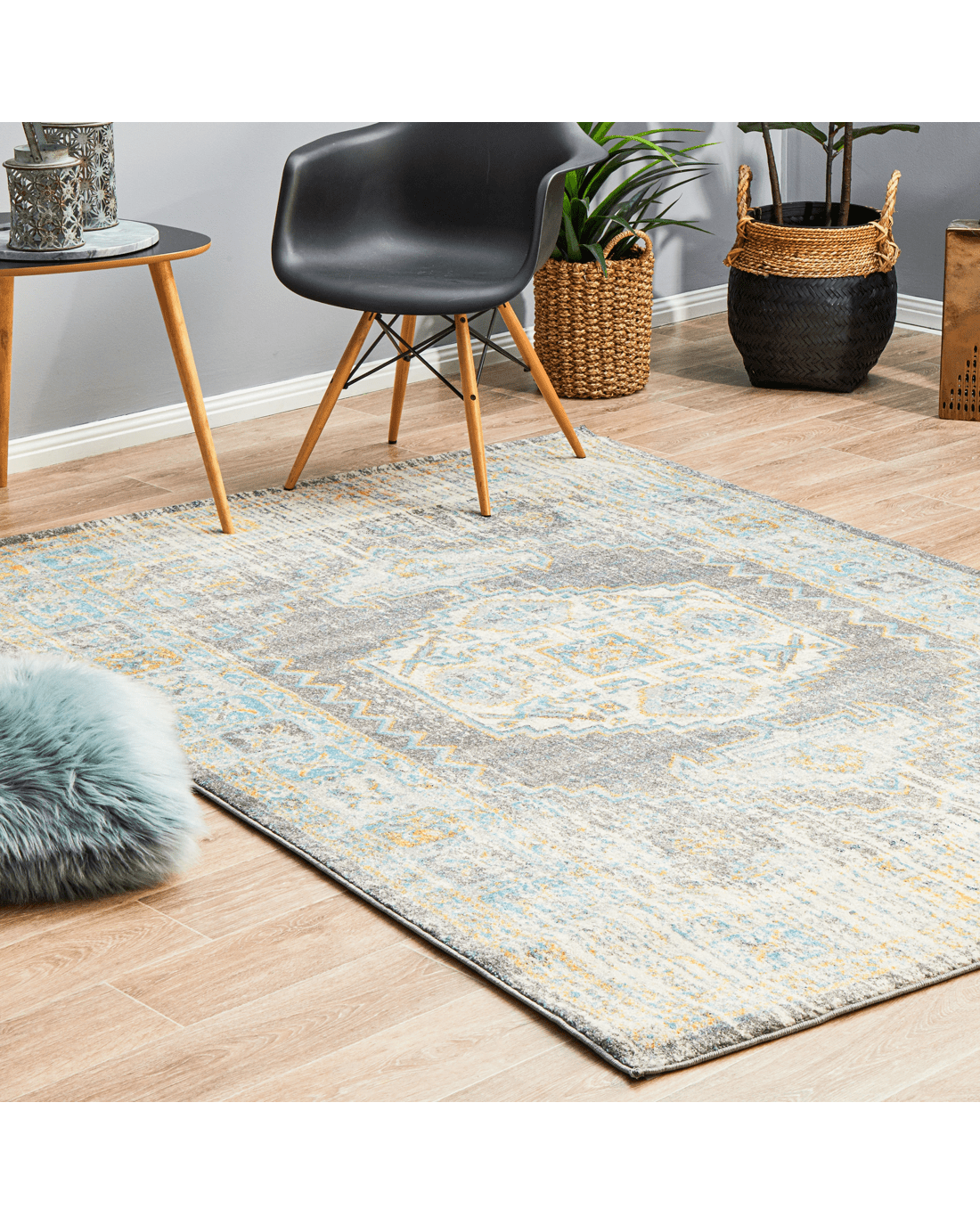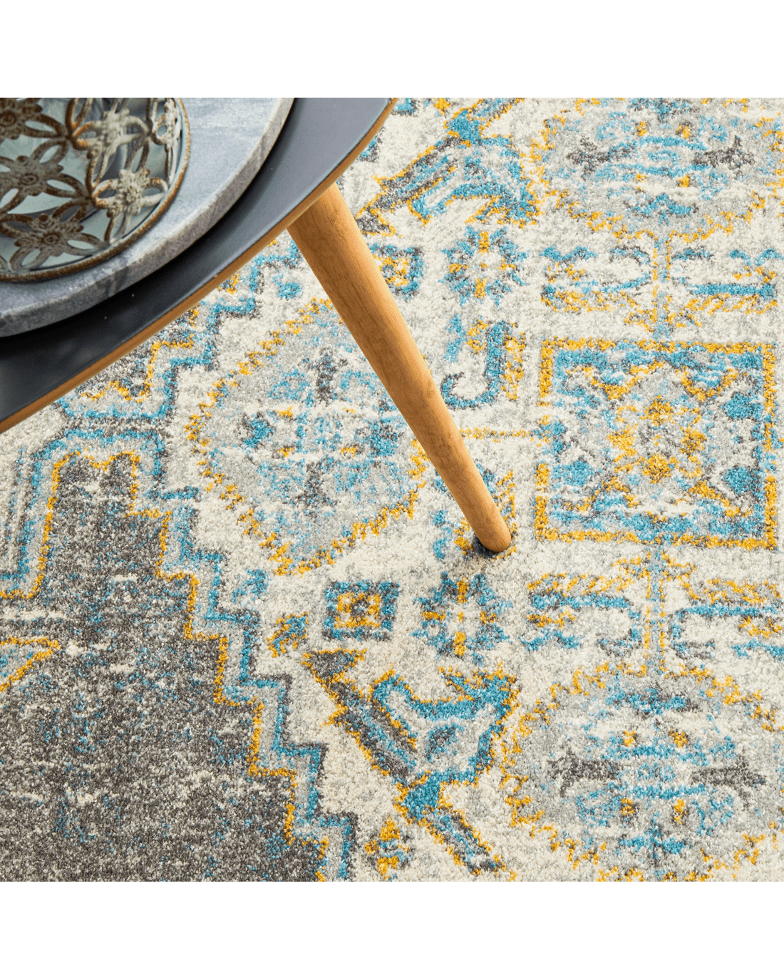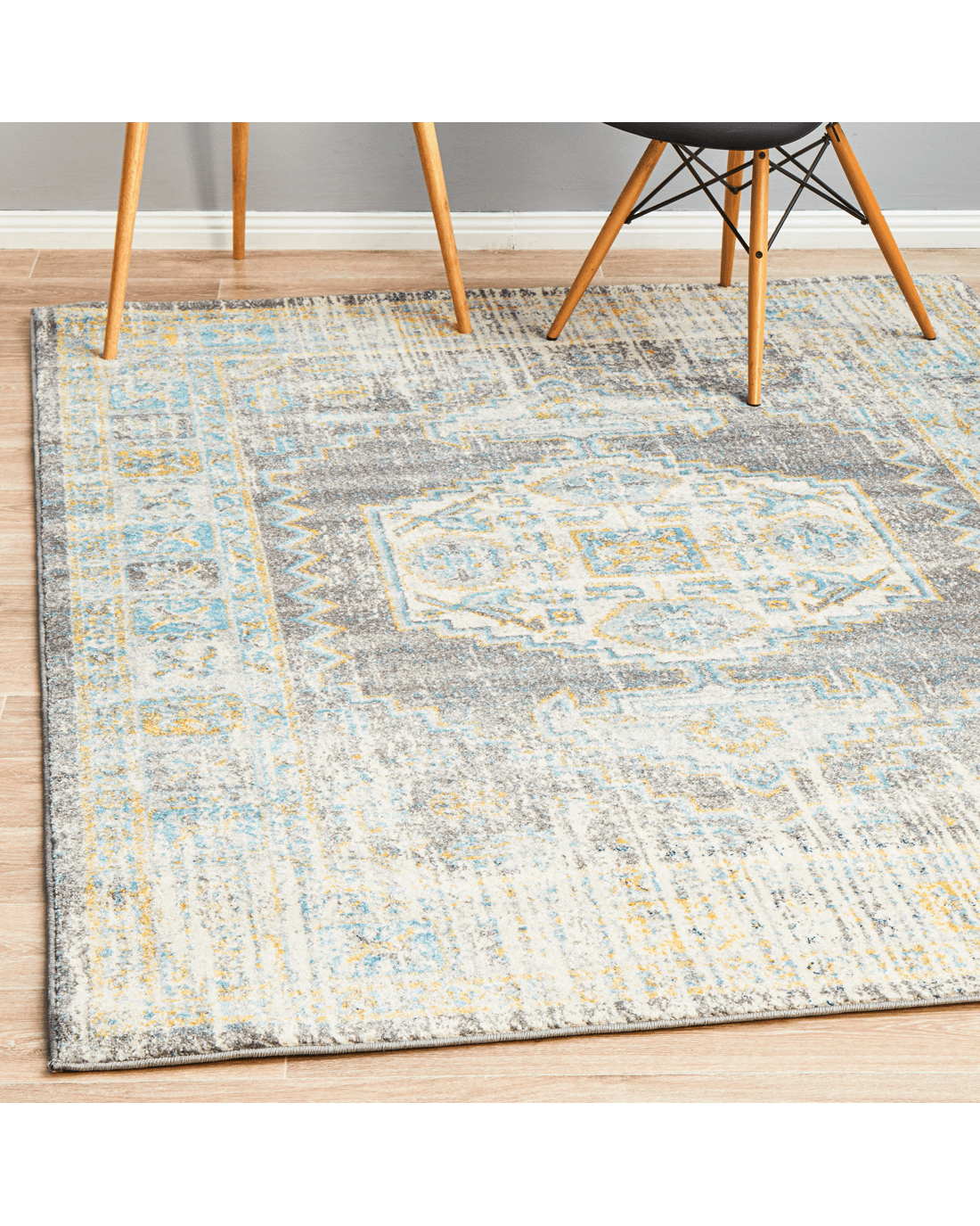 Era Rugs bring forth the traditional ancient inspired rugs yet create a dazzling display which fit every home and spaces. The Era Silver Rug is a nice addition as it features grey mainstream context and sporadic geometric patterns tinted in marine and sunny tune.. Power-loomed for a marvelous rug to beautifully accentuate modern decor while maintaining level of comfort and durability to any hard-surfaced floor and underfoot.