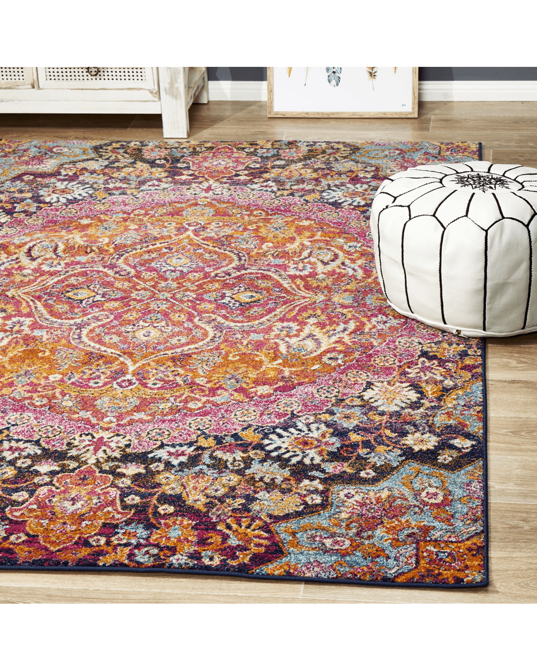 The Gallery Ainsley rug is a gem of a find as it features symmetrical floral figure scheming, faded patterning and a fusion of blue, orange and earthly tone, this wonderful piece of art will surely be a focal point to any setting. A Persian inspired piece made from 100% quality polypropylene materials power-loomed to ensure durability without undermining the elegance and appeal of this fabulous centerpiece.