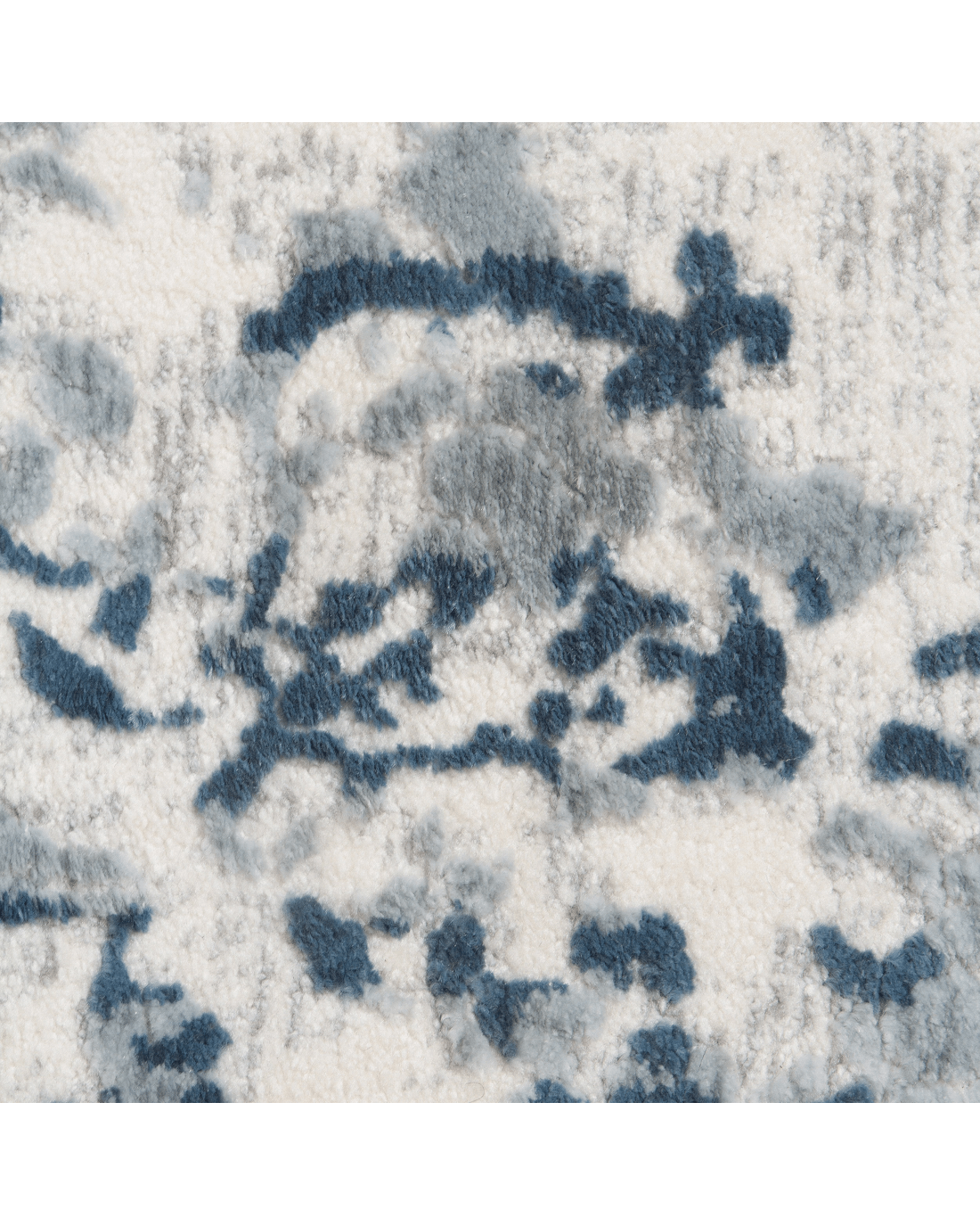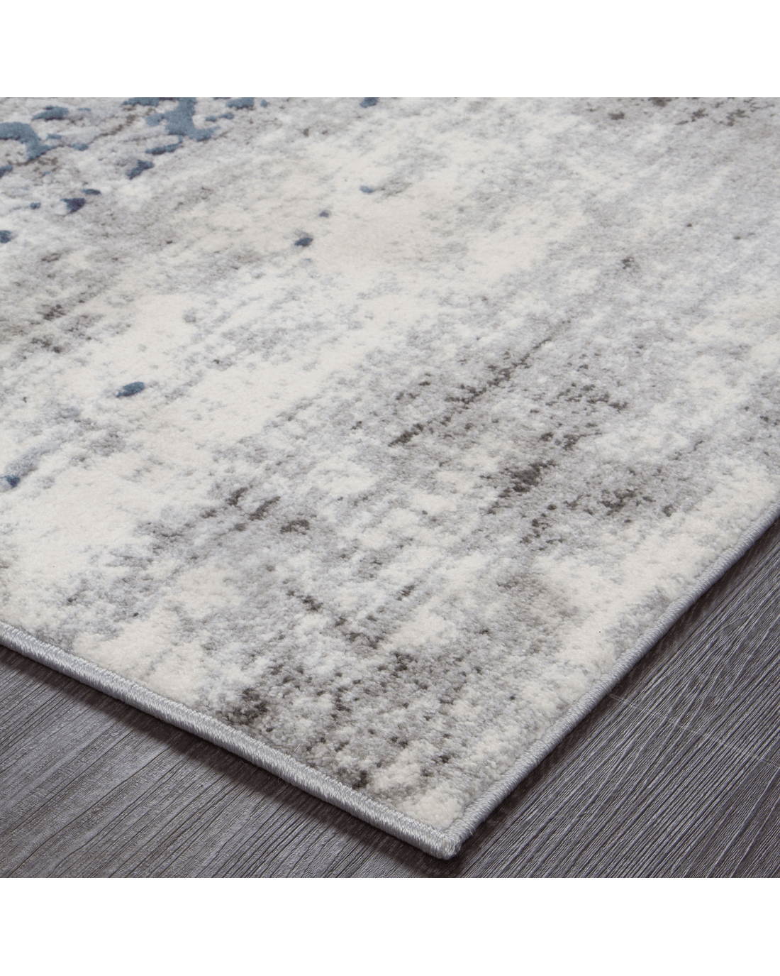 This eye-catching collection of luxury modern rugs is sure to make a stylish statement in any room. Its shades of grey, chalk, light and dark blue, and silver makes it an ideal transitional piece that can easily be integrated into any existing decor. The soft plush pile consists of a high-low effect with matt and slightly luminous fibre which feels truly sumptuous under foot. This rug will surely be the talking point of any room.