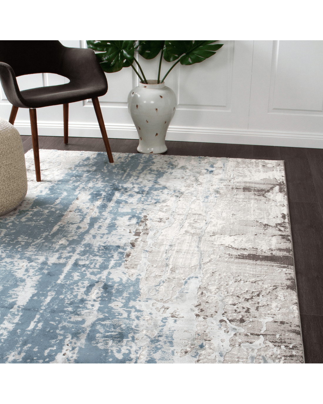This eye-catching collection of luxury modern rugs is sure to make a stylish statement in any room. Its shades of grey, chalk, light and dark blue, and silver makes it an ideal transitional piece that can easily be integrated into any existing decor. The soft plush pile consists of a high-low effect with matt and slightly luminous fibre which feels truly sumptuous under foot. This rug will surely be the talking point of any room.