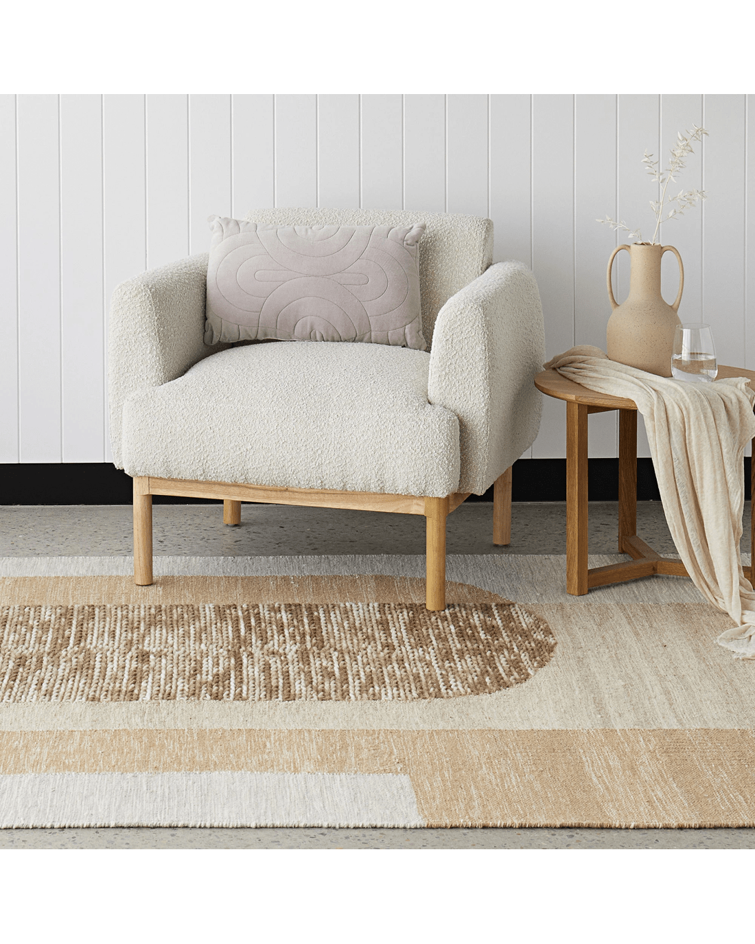 Make a statement with the Lumina Elroy rug, perfectly suited to mid-Era modern and Bohemian styling themes. Hand-loomed in India with 85% Wool and 15% Cotton, this texture rich beauty will add life to any setting with it's gorgeous palette of neutrals and pops of blue and black.