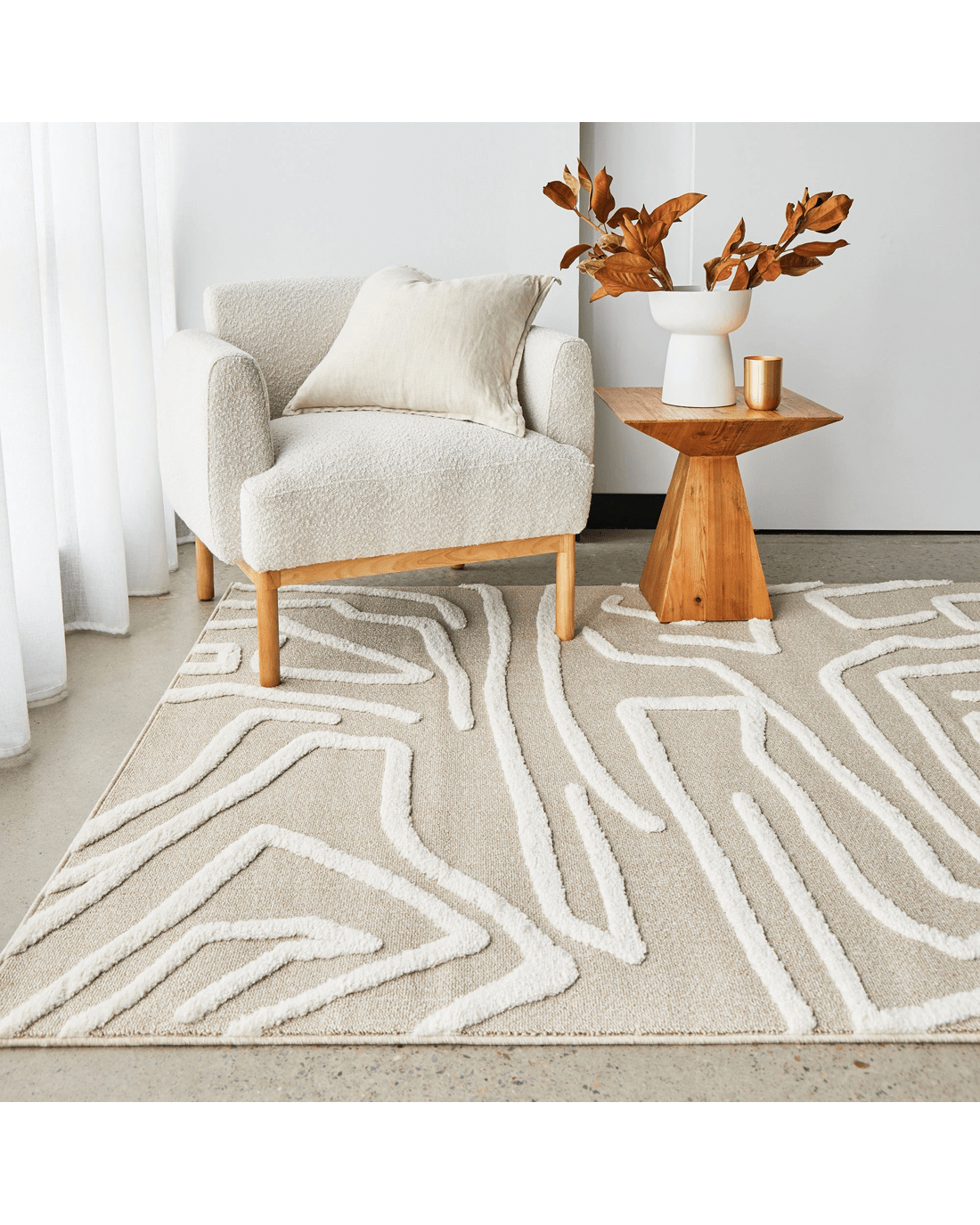 Experience contemporary elegance with the Lyrica Kobi rug. Designed for modern interiors, this rug boasts a soft pile and a natural colour that effortlessly complements neutral decor homes. The high-low pile creates a unique textured effect, giving rise to an organic line pattern that adds depth and visual intrigue. With a natural low pile and an off-white high pile line pattern, this rug offers a captivating contrast. Elevate your space with the modern sophistication and cosy comfort of this exquisite rug, creating a stylish and inviting atmosphere in any room.