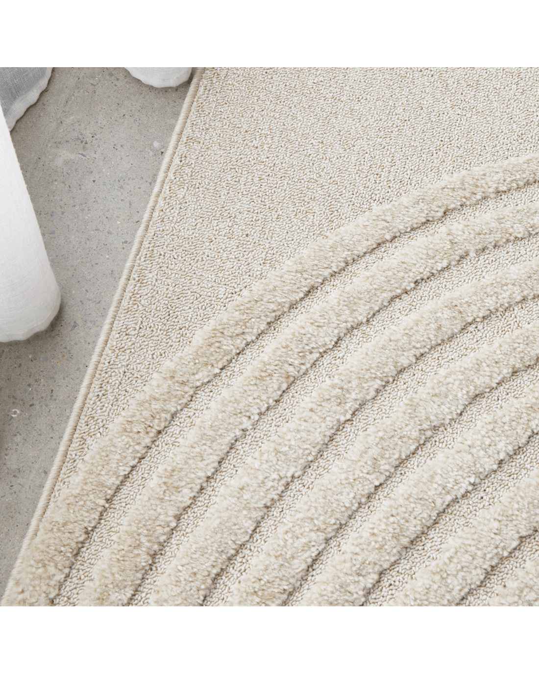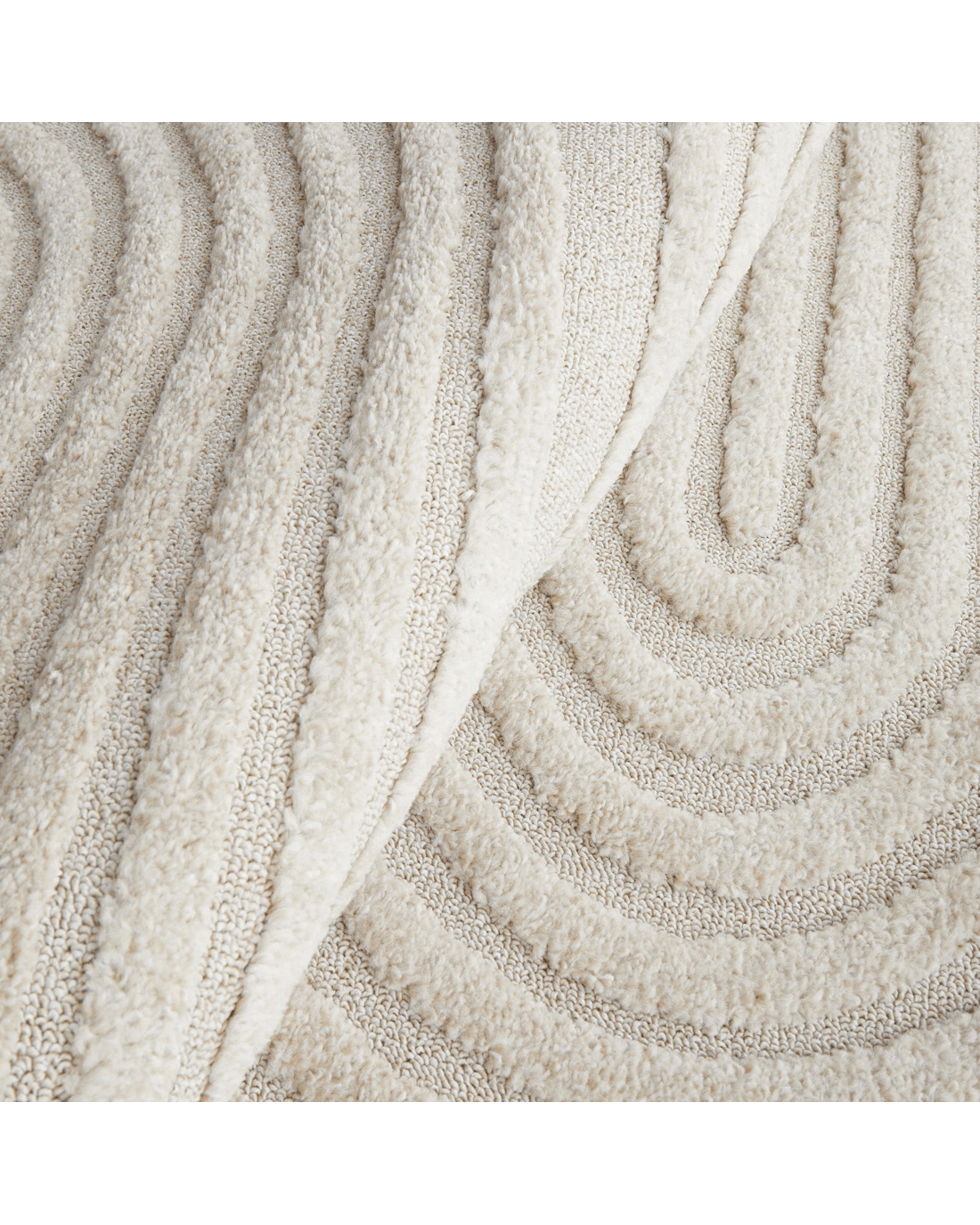 The Nirvana Abbey rug presents a modern masterpiece, where design and function converge to create a visually stunning statement. Featuring curved arches articulated through precise high and low pile details, this rug infuses any room with a touch of sophistication. Its subtle interplay of texture enhances the rug's elegant lines, making it a perfect complement to neutral, modern, or contemporary decor. Available in beige, white, and a harmonious mix of both, the Nirvana Abbey rug offers versatility and style, becoming a focal point that gracefully anchors any interior space.
