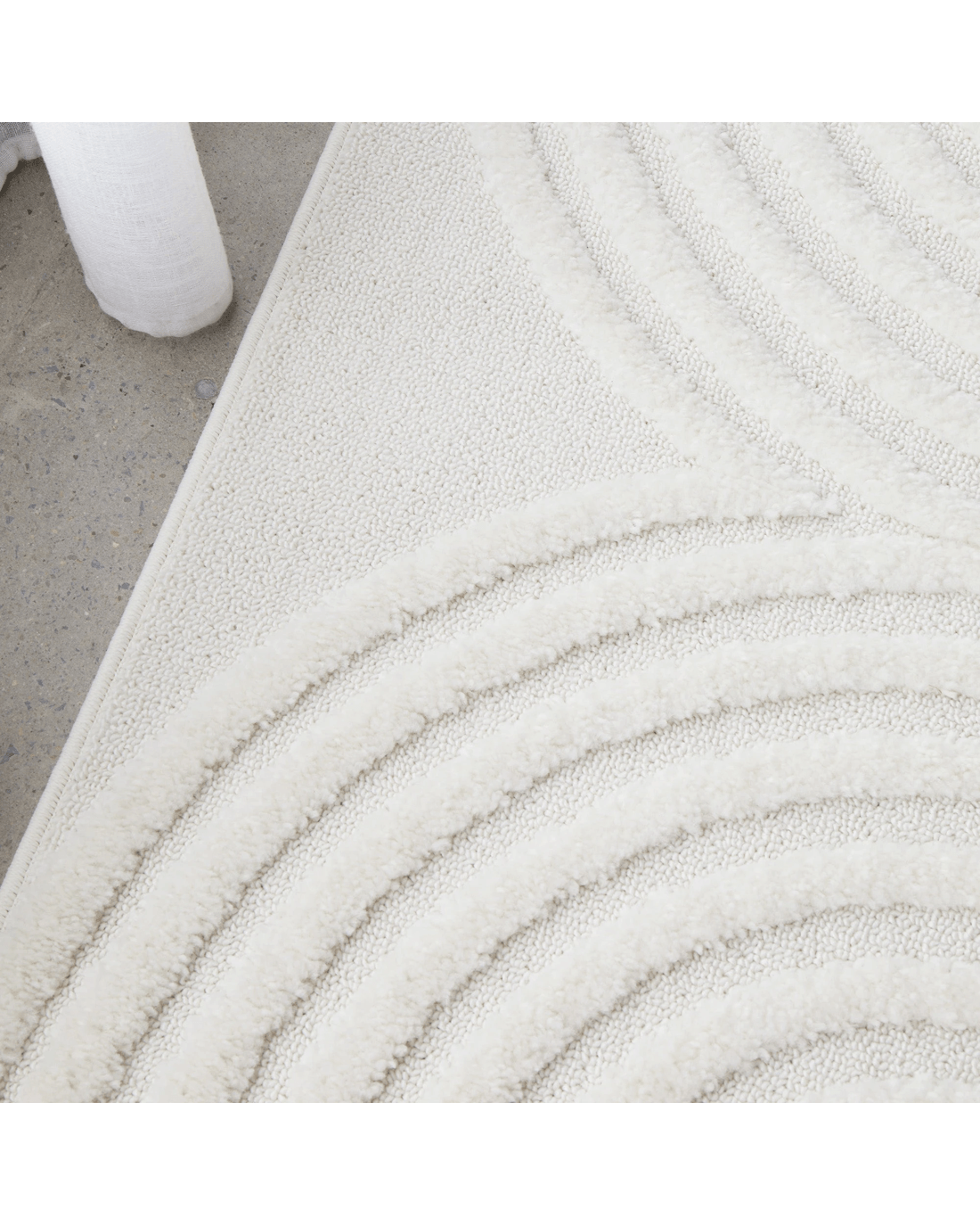 The Nirvana Abbey rug presents a modern masterpiece, where design and function converge to create a visually stunning statement. Featuring curved arches articulated through precise high and low pile details, this rug infuses any room with a touch of sophistication. Its subtle interplay of texture enhances the rug's elegant lines, making it a perfect complement to neutral, modern, or contemporary decor. Available in beige, white, and a harmonious mix of both, the Nirvana Abbey rug offers versatility and style, becoming a focal point that gracefully anchors any interior space.