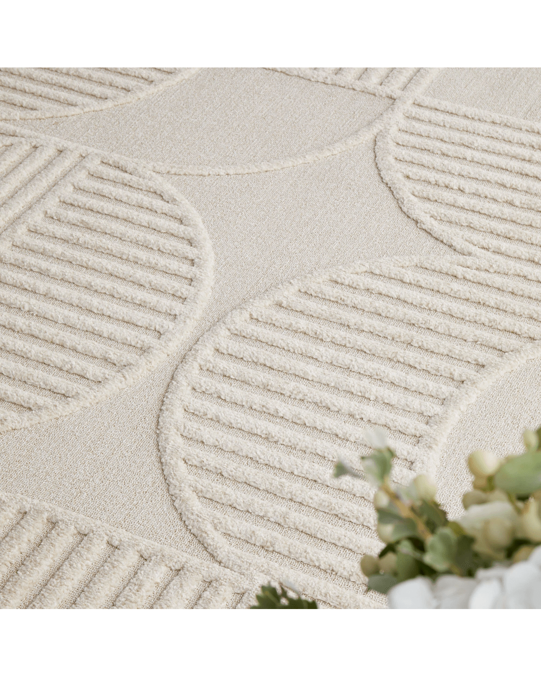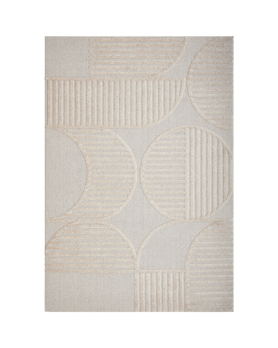 The Nirvana Abbey rug presents a modern masterpiece, where design and function converge to create a visually stunning statement. Featuring curved arches articulated through precise high and low pile details, this rug infuses any room with a touch of sophistication. Its subtle interplay of texture enhances the rug's elegant lines, making it a perfect complement to neutral, modern, or contemporary decor. Available in beige, white, and a harmonious mix of both, the Nirvana Abbey rug offers versatility and style, becoming a focal point that gracefully anchors any interior space.