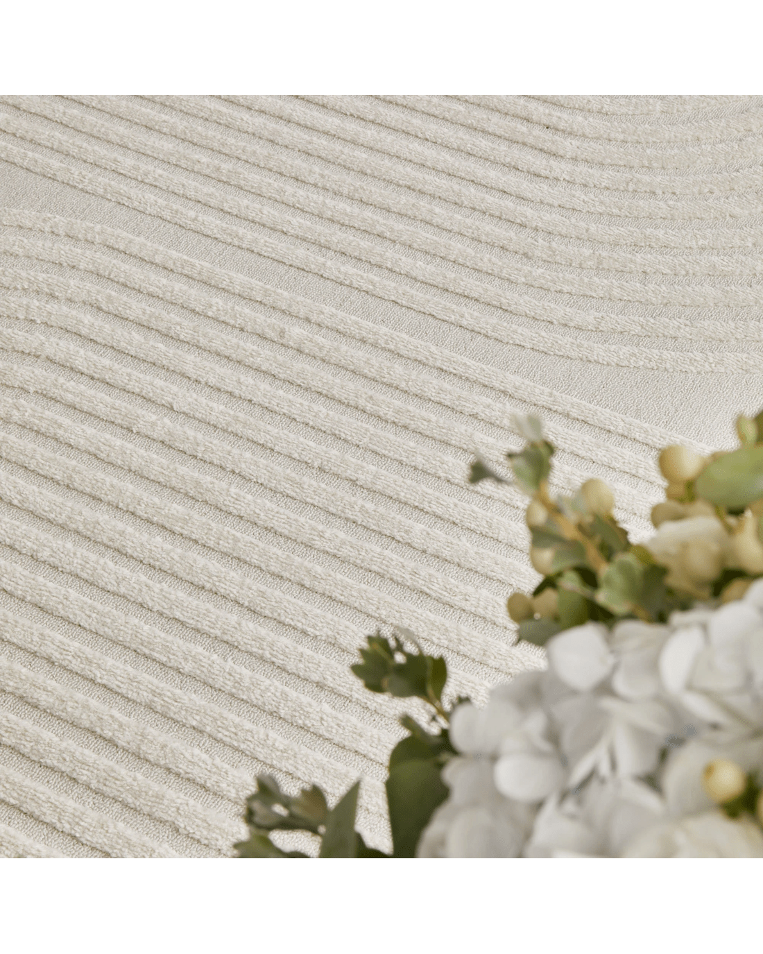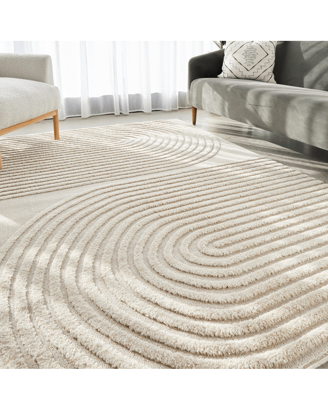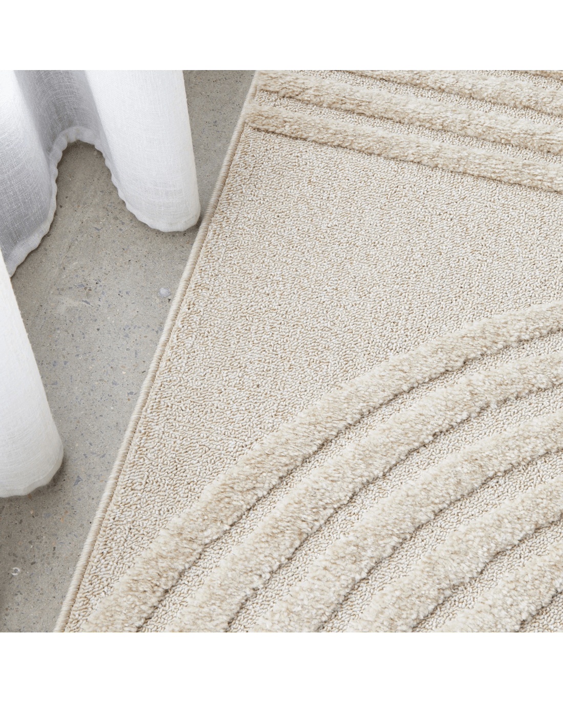 The Nirvana Abbey rug presents a modern masterpiece, where design and function converge to create a visually stunning statement. Featuring curved arches articulated through precise high and low pile details, this rug infuses any room with a touch of sophistication. Its subtle interplay of texture enhances the rug's elegant lines, making it a perfect complement to neutral, modern, or contemporary decor. Available in beige, white, and a harmonious mix of both, the Nirvana Abbey rug offers versatility and style, becoming a focal point that gracefully anchors any interior space.
