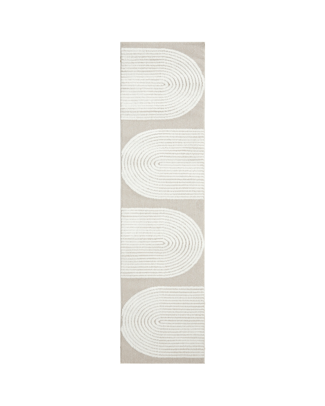 The Nirvana Abbey rug presents a modern masterpiece, where design and function converge to create a visually stunning statement. Featuring curved arches articulated through precise high and low pile details, this rug infuses any room with a touch of sophistication. Its subtle interplay of texture enhances the rug's elegant lines, making it a perfect complement to neutral, modern, or contemporary decor. Available in beige, white, and a harmonious mix of both, the Nirvana Abbey rug offers versatility and style, becoming a focal point that gracefully anchors any interior space.