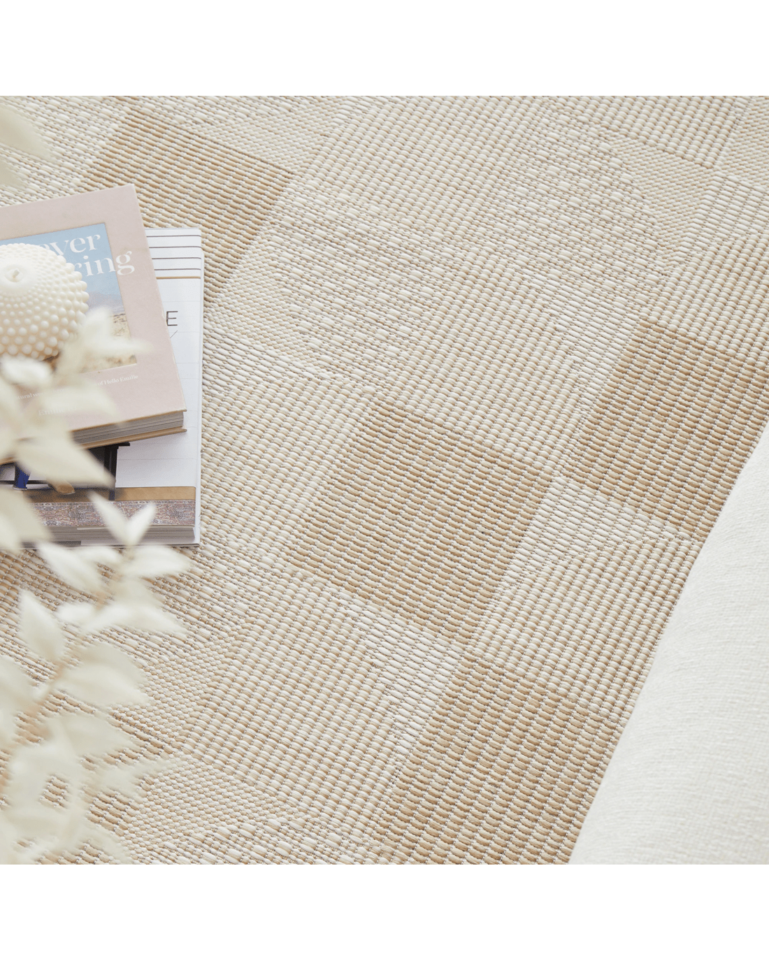 The Palmline Collection is a beautiful indoor-outdoor rug ensemble featuring unique styles. Each rug showcases a distinctive geometric pattern and multiple textured flatweave, adding interest and sophistication to any space. The blend of natural and cream tones ensures versatility and elegance. With styles to suit both contemporary and transitional spaces, these durable rugs are perfect for enhancing both indoor and outdoor spaces. The Palmline Collection combines style and durability to effortlessly transform your home decor. Find the perfect rug to complement your space and style.