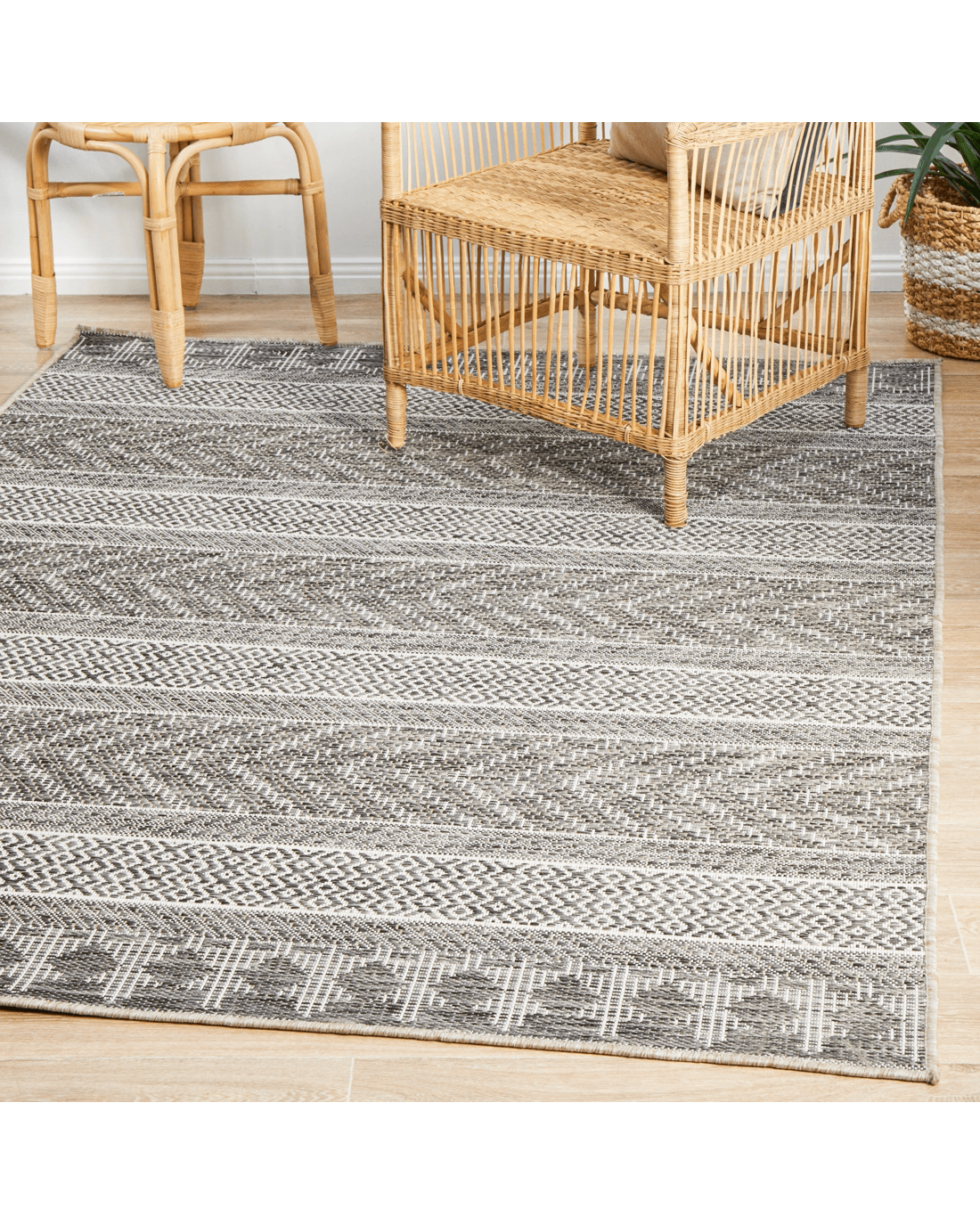 The contemporary indoor outdoor rugs in Rug Cultures Portico collection are the perfect decorating choice to impart high style interior glamour on your deck, porch or even inside your home. Every rug from the collection brings contemporary styling and innovative design to those heavy traffic areas of your home or outdoor living space. Power loomed using enhanced polypropylene, Portico rugs are weather and spill resistant, easy care and beautifully designed with striking effects that will add flair to any indoor or outdoor area.