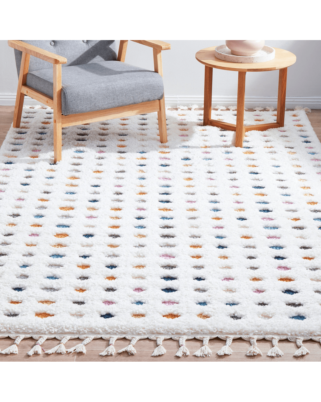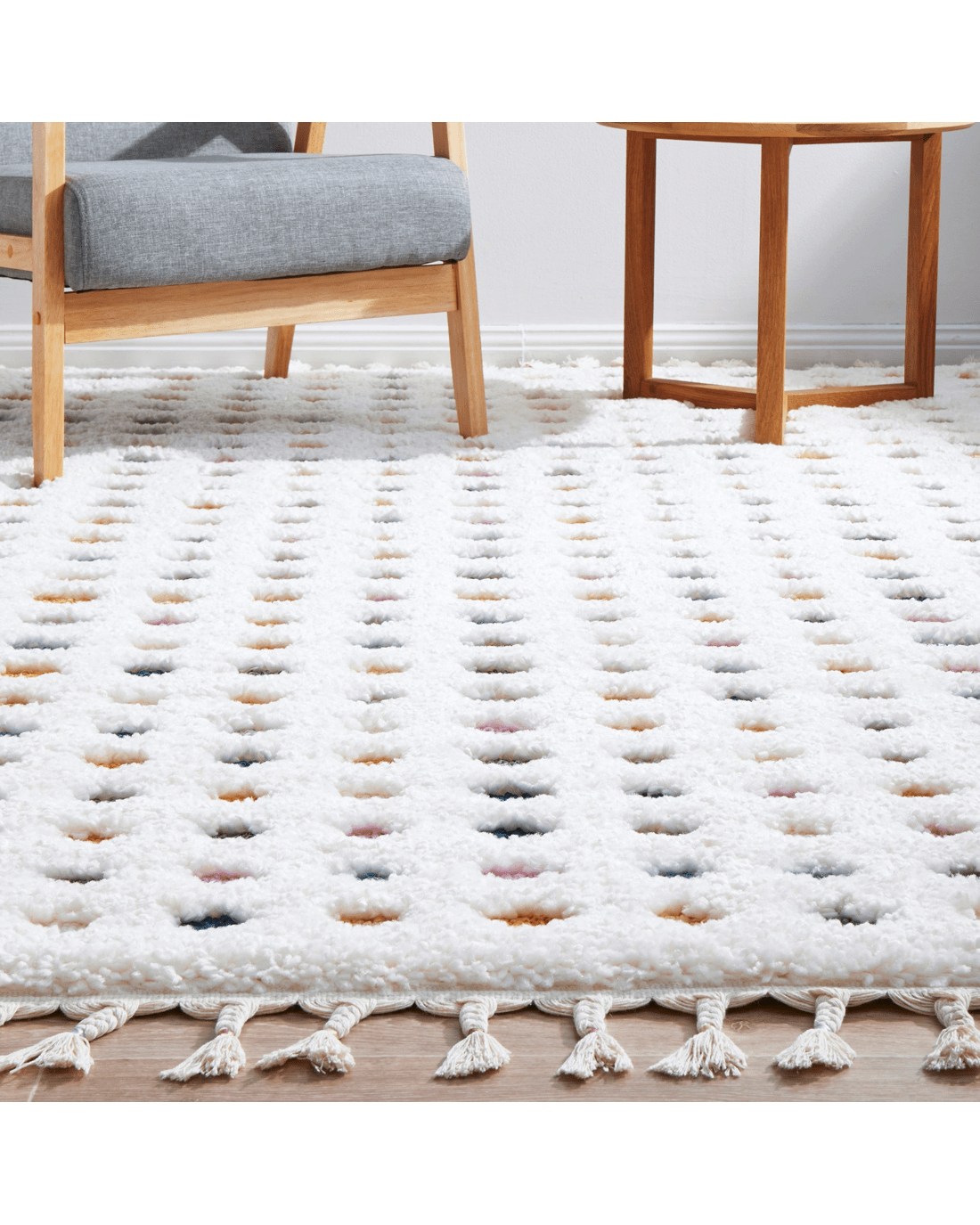 Bursting with style and flair, the simply gorgeous Remy rug features a vibrant nomadic-inspired motif and eccentric pops of colours that are bound to invigorate your living space. Perfect for a bohemian or eclectic decor style, Remy’s intricately carved design and colourful tassel accents is a one-of-a-kind tactile treat for the senses.