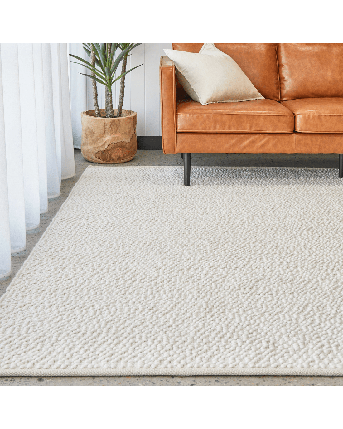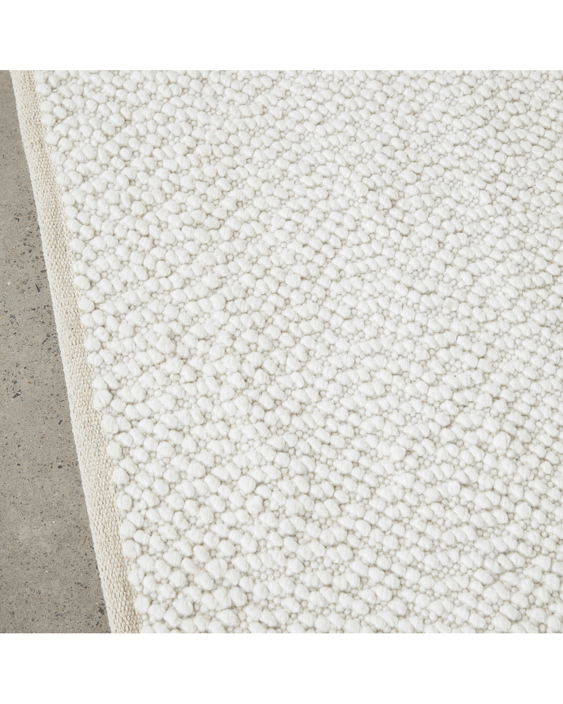 Embrace the timeless charm of the Tactile Natural rug, a contemporary rug that effortlessly brings warmth and cosiness to any room. Its natural tones make it an ideal choice for neutral homes, adding an elegant touch to your decor. The rug's beautifully textured surface Encores the luxurious feel of boucle fabric, creating a tactile experience that invites you to sink your feet into its plush pile. To enhance its visual appeal and provide a sense of refinement, the rug is bordered by a flat weave detail on the ends, grounding the design and adding a touch of sophistication. Elevate the ambiance of your space with the modern elegance and comforting Aveline of the Tactile Natural rug.