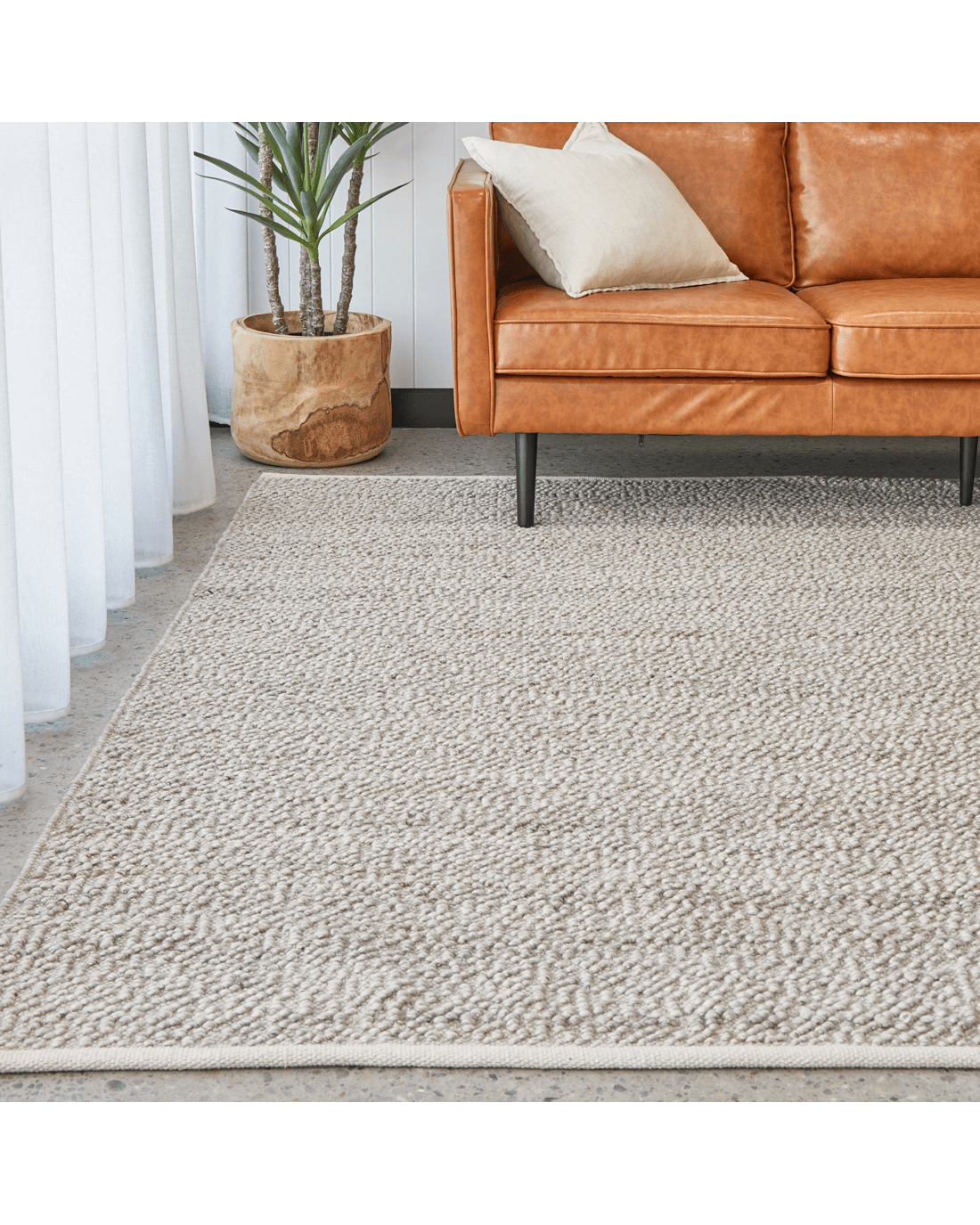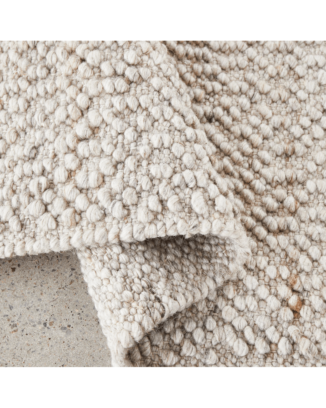 Embrace the timeless charm of the Tactile Natural rug, a contemporary rug that effortlessly brings warmth and cosiness to any room. Its natural tones make it an ideal choice for neutral homes, adding an elegant touch to your decor. The rug's beautifully textured surface Encores the luxurious feel of boucle fabric, creating a tactile experience that invites you to sink your feet into its plush pile. To enhance its visual appeal and provide a sense of refinement, the rug is bordered by a flat weave detail on the ends, grounding the design and adding a touch of sophistication. Elevate the ambiance of your space with the modern elegance and comforting Aveline of the Tactile Natural rug.