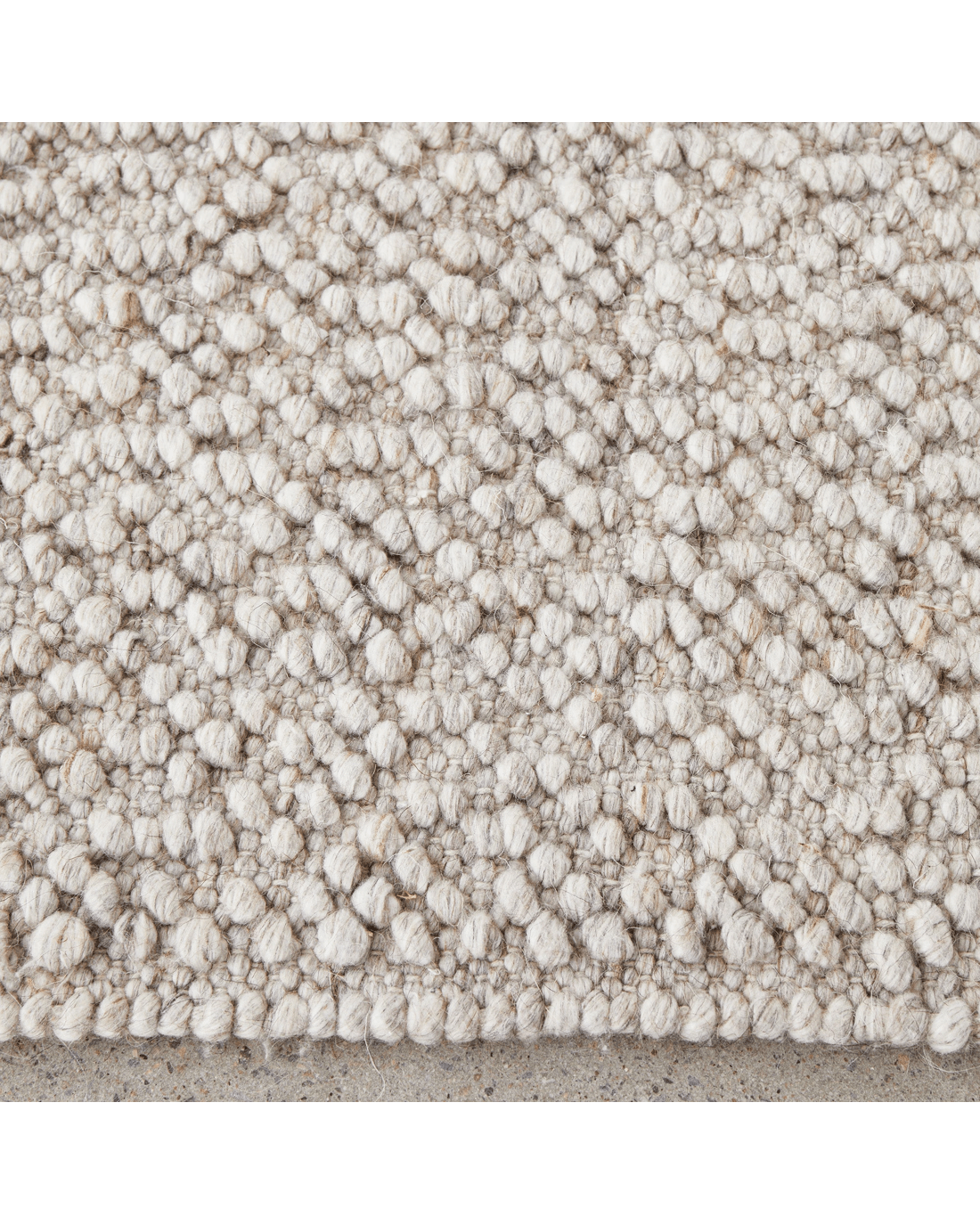 Embrace the timeless charm of the Tactile Natural rug, a contemporary rug that effortlessly brings warmth and cosiness to any room. Its natural tones make it an ideal choice for neutral homes, adding an elegant touch to your decor. The rug's beautifully textured surface Encores the luxurious feel of boucle fabric, creating a tactile experience that invites you to sink your feet into its plush pile. To enhance its visual appeal and provide a sense of refinement, the rug is bordered by a flat weave detail on the ends, grounding the design and adding a touch of sophistication. Elevate the ambiance of your space with the modern elegance and comforting Aveline of the Tactile Natural rug.