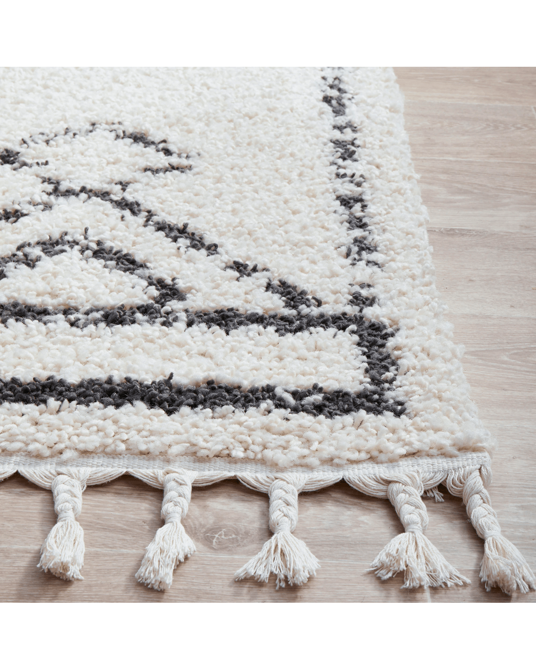 A perfect way to add a touch of luxury to your home, Tangier is sure to make a mesmerising statement with its iconic tribal design and soft neutral colour palette. Adorned with braided tassels and a mesmerising nomadic pattern, Tangier is a perfect statement piece for a coastal or boho interior style. Expertly power loomed in Turkey, Tangier has been crafted from polypropylene fibres to create a gorgeously soft 4cm thick pile with stain resistant properties and a non-shed, pet-friendly construction.