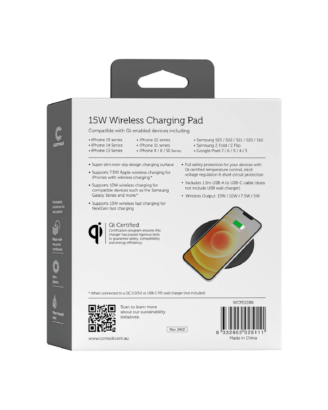 Sold by OfficeworksComsol 15W Wireless Fast Charging Pad Grey