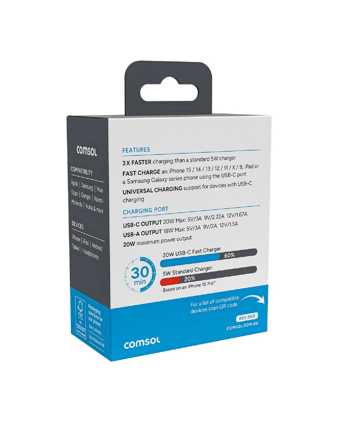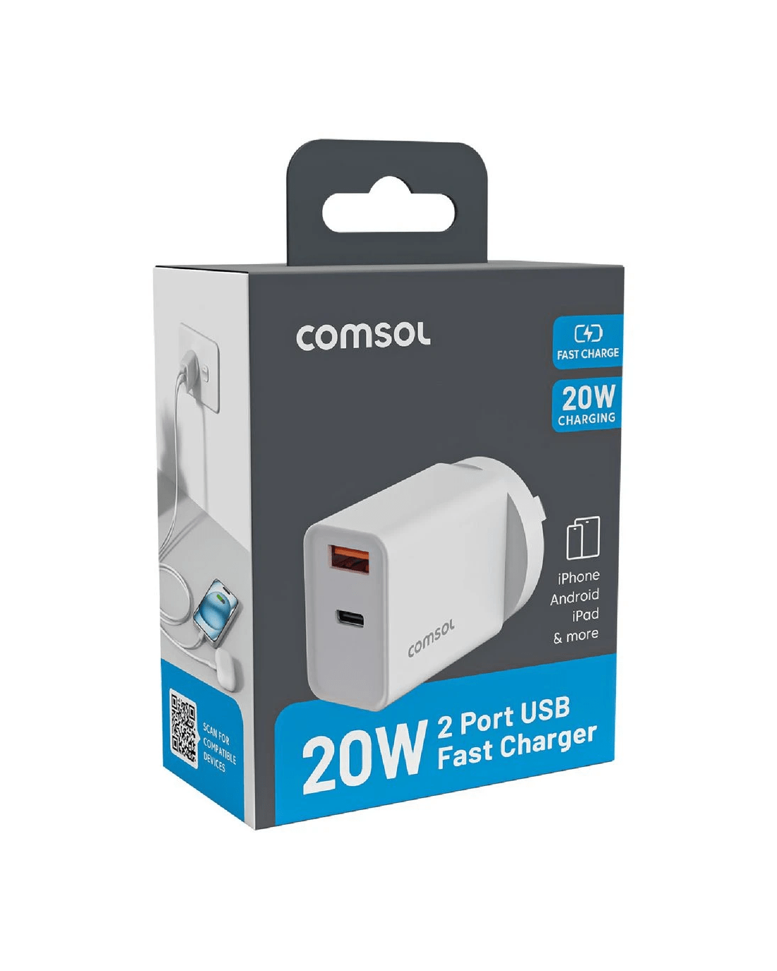 Sold by OfficeworksComsol 20W Dual Port Wall Charger White
