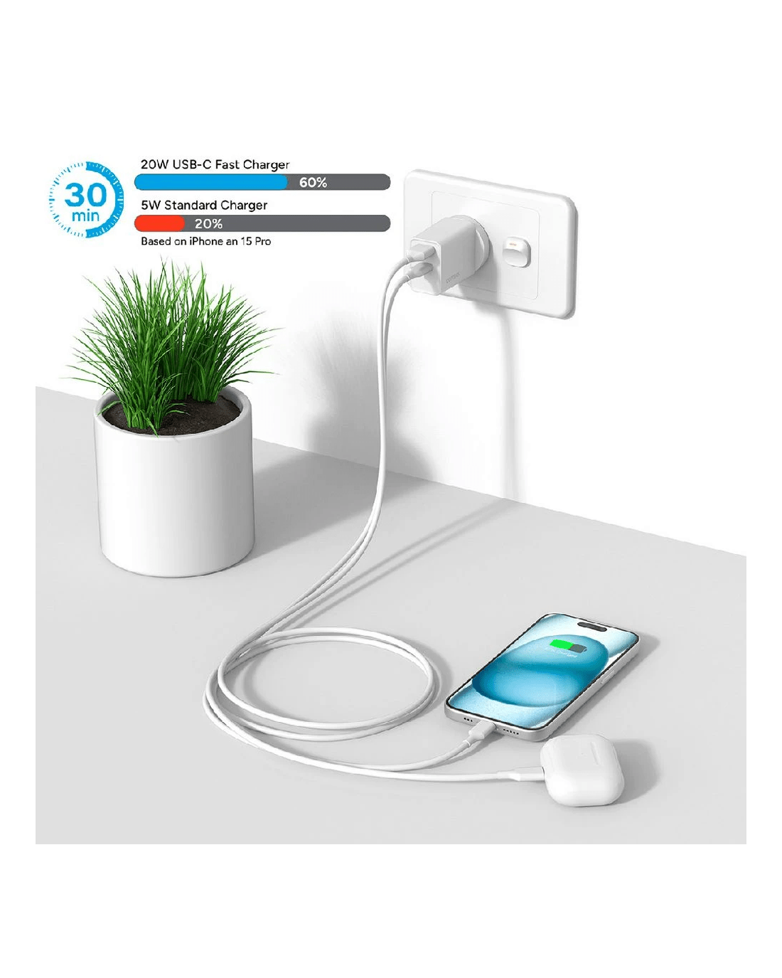 - It has a stylish white colourway to match your existing cables and accessories.