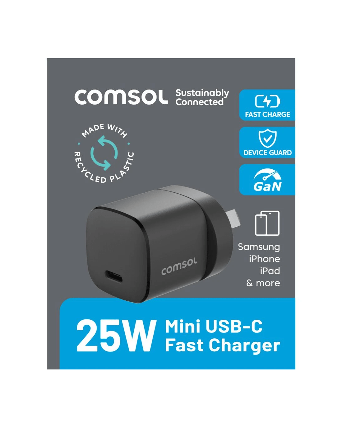 This Comsol 25W USB-C Mini Charger is a compact solution for fast, efficient charging. It supports PD and PPS protocols to power up your devices quickly and safely. Plus, the ultra-portable design makes it easy to take with you from home to office to travel.