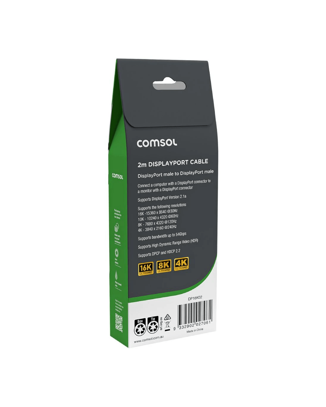 Sold by OfficeworksComsol DisplayPort Cable 16K 2m Black