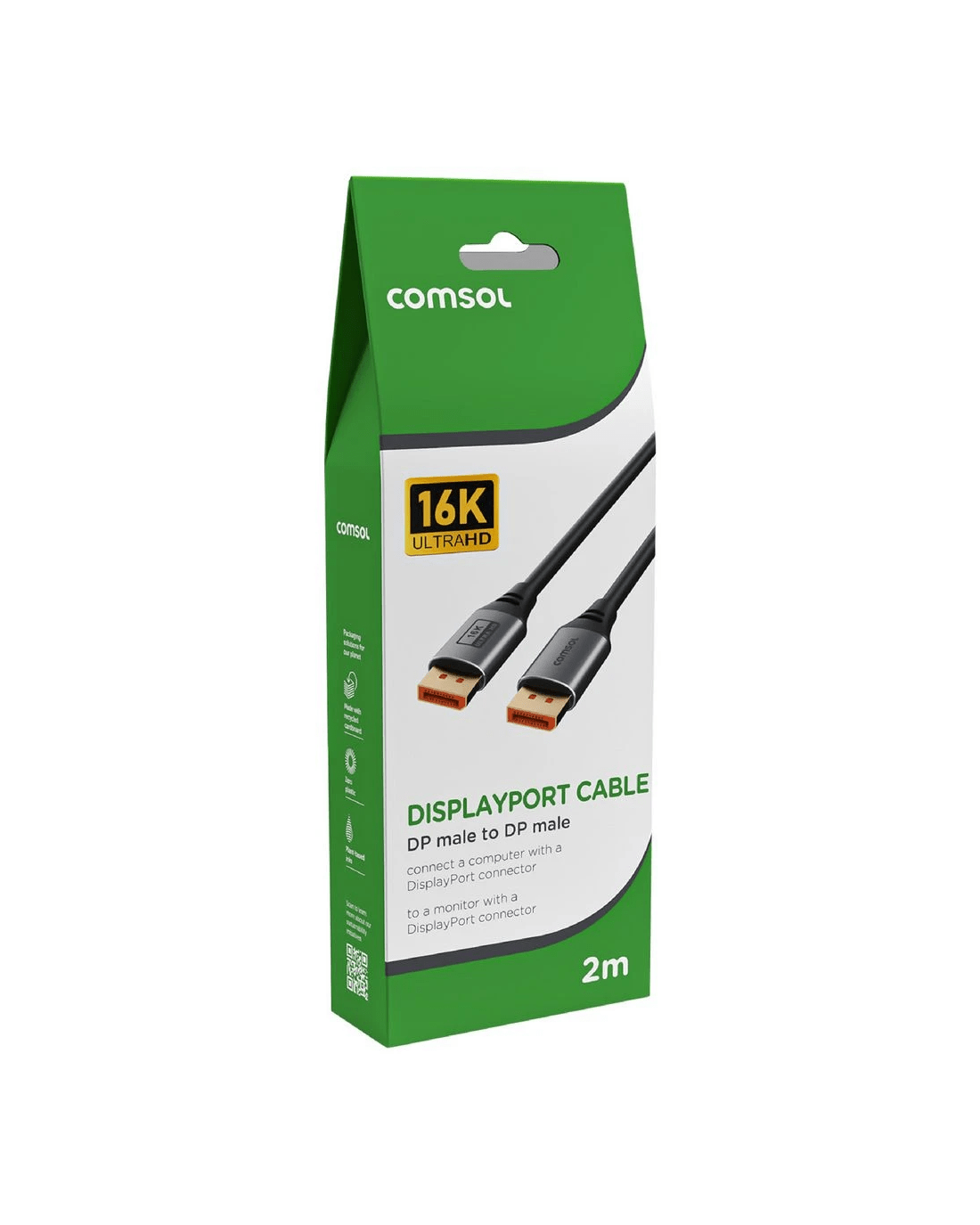 Enjoy a high resolution display on your monitor using this Comsol DisplayPort Cable. It supports resolutions up to 16K and is 2 m long, so it's easy to incorporate in your current home or work setup.