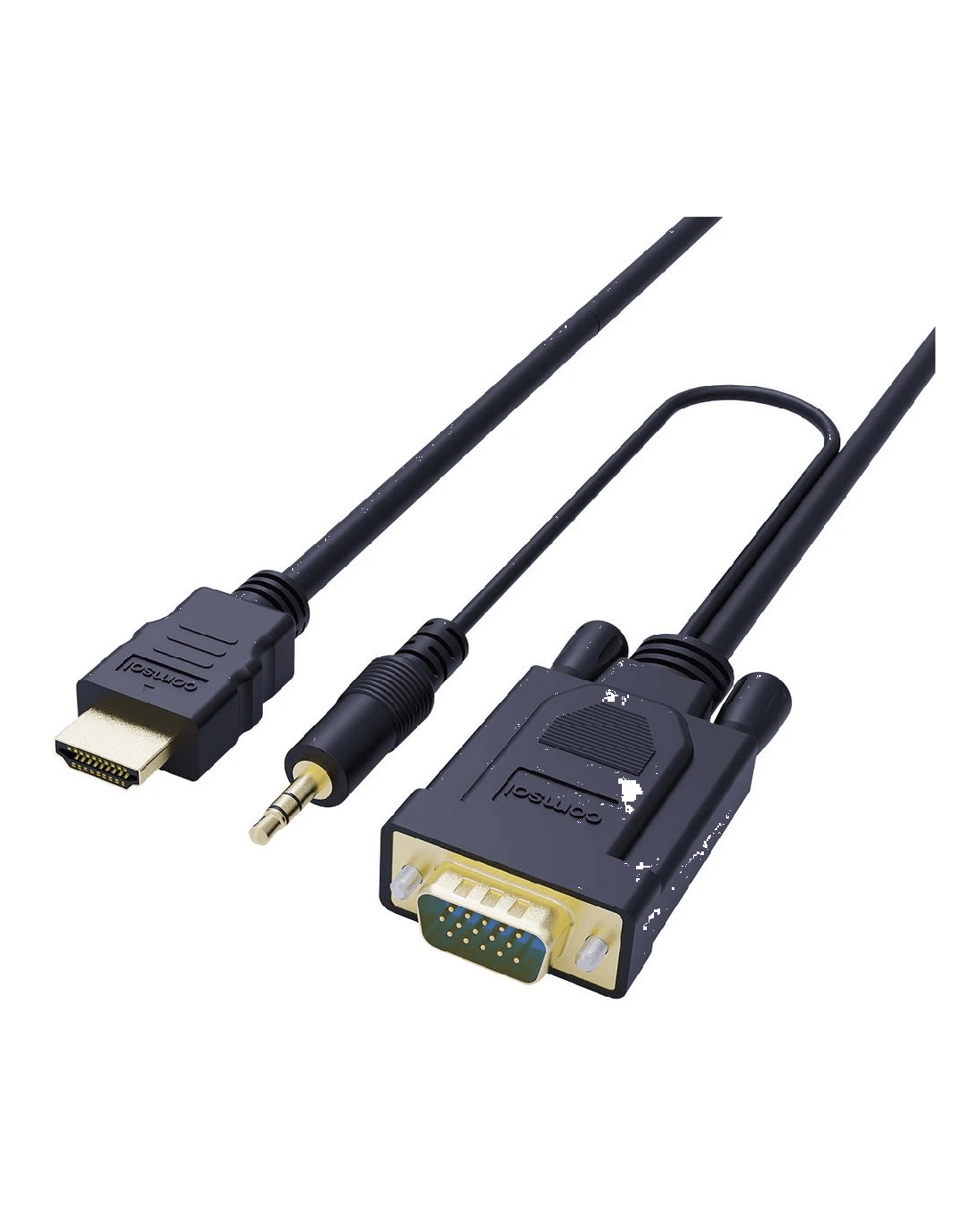 This Comsol HDMI to VGA Cable lets you connect your computer or set top box with HDMI port to a monitor or display with VGA port and a set of speakers. It support HD resolution up to 1920 x 1080 @60Hz, as well as stereo audio output and is host powered, meaning you don't need to find an extra powerpoint to start watching and listening.