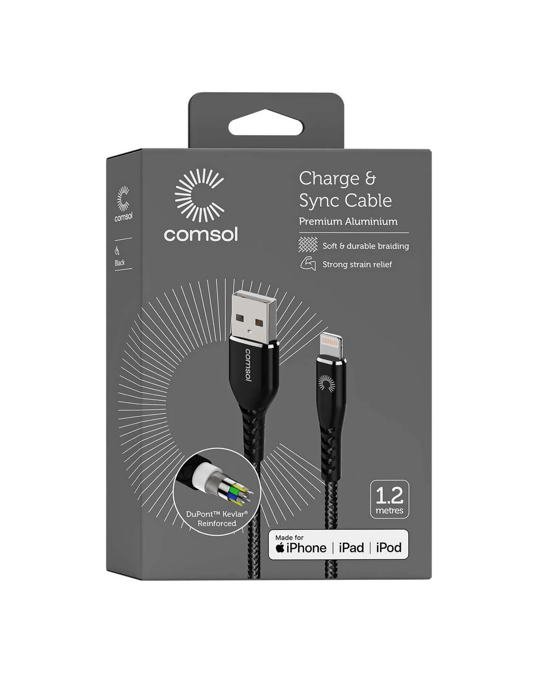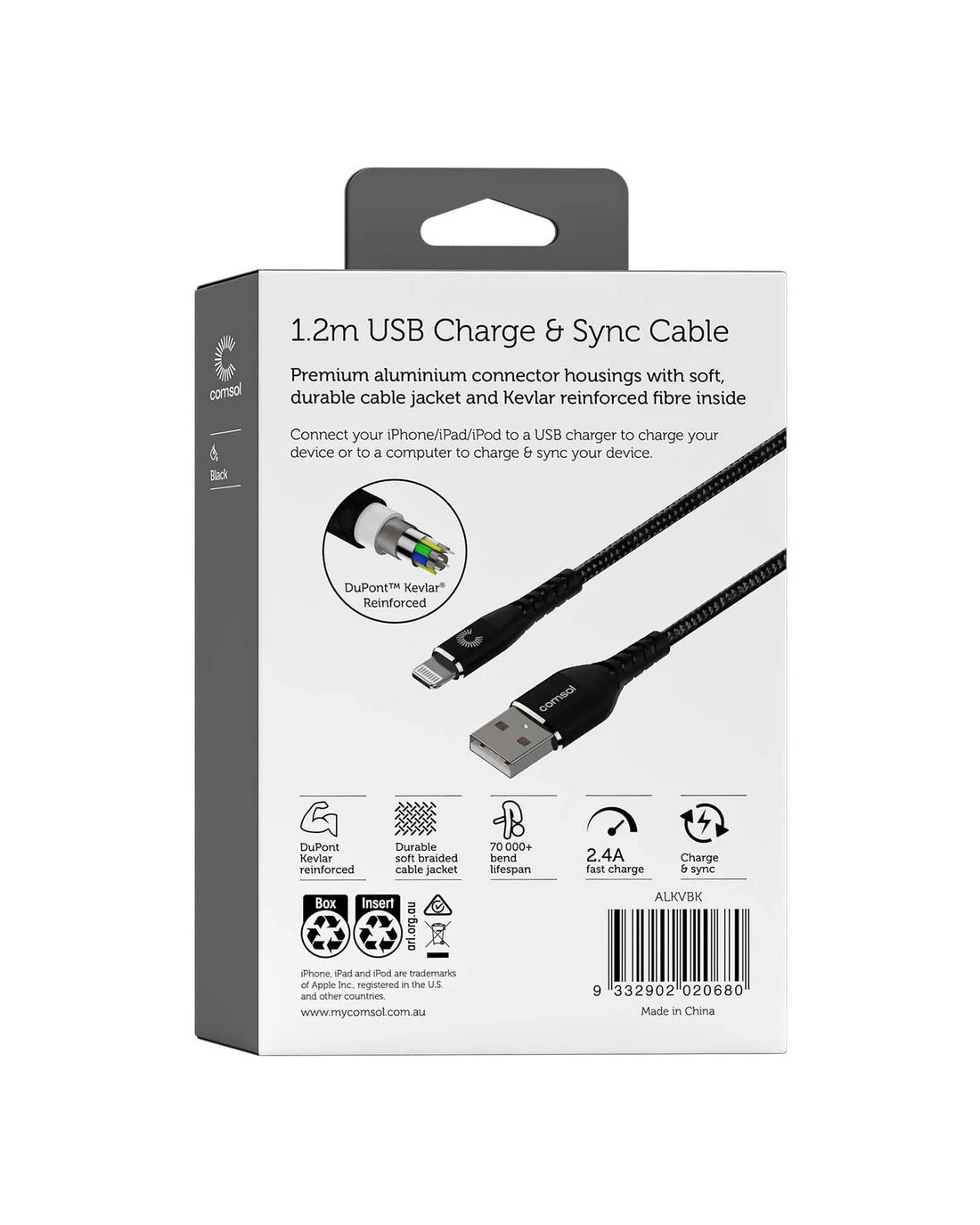 Sold by OfficeworksComsol Kevlar Lightning to USB-A MFi Cable 1.2m Black