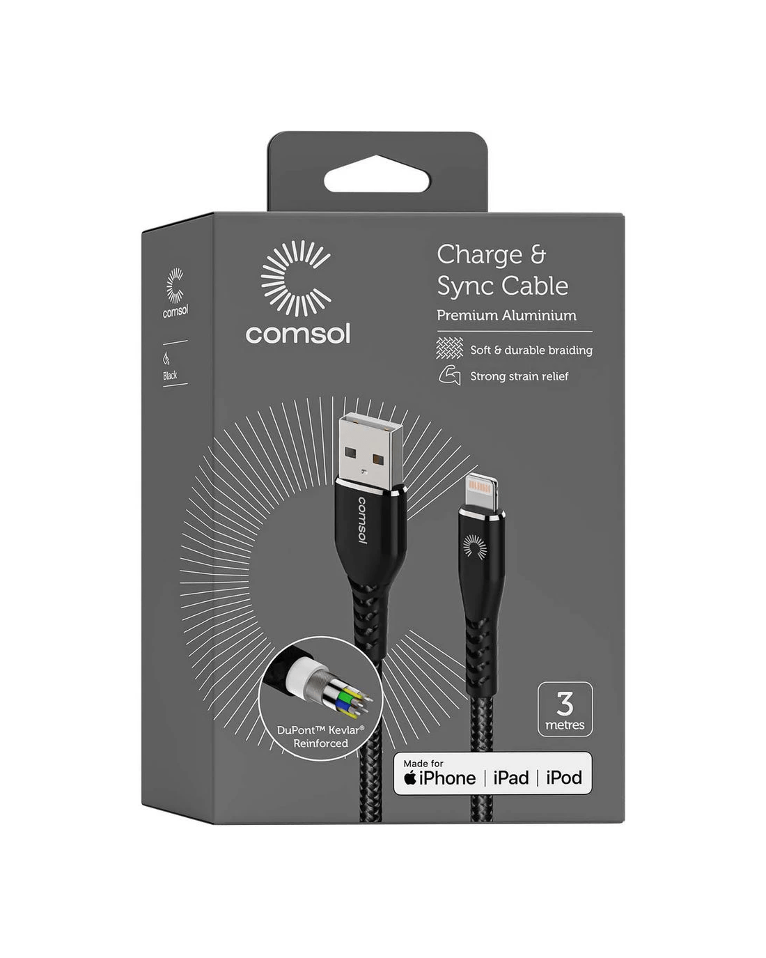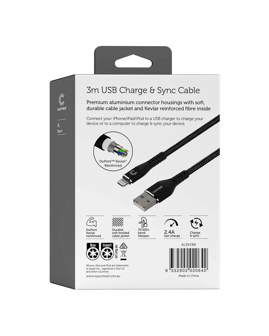 Sold by OfficeworksComsol Kevlar Lightning to USB-A MFi Cable 3m Black