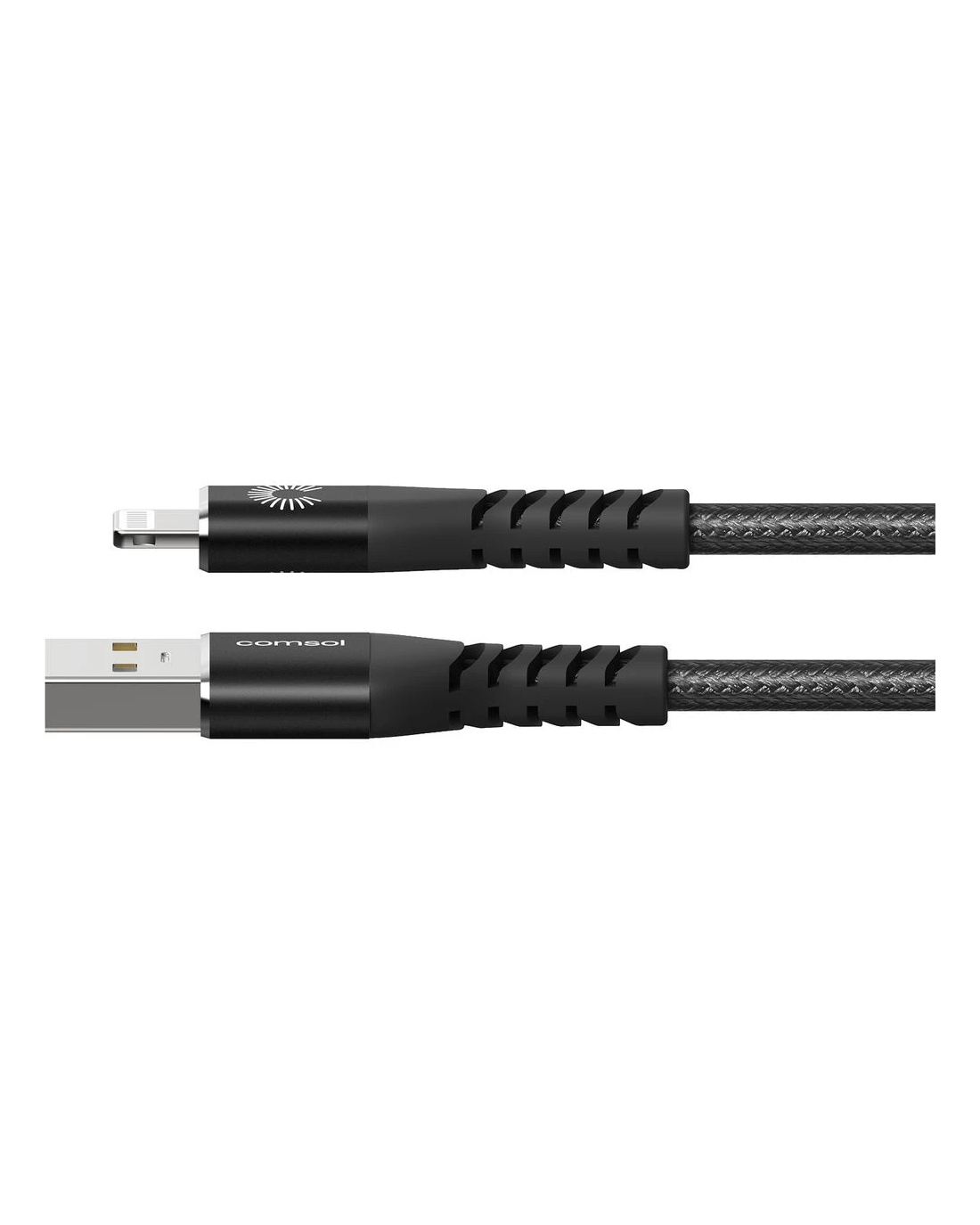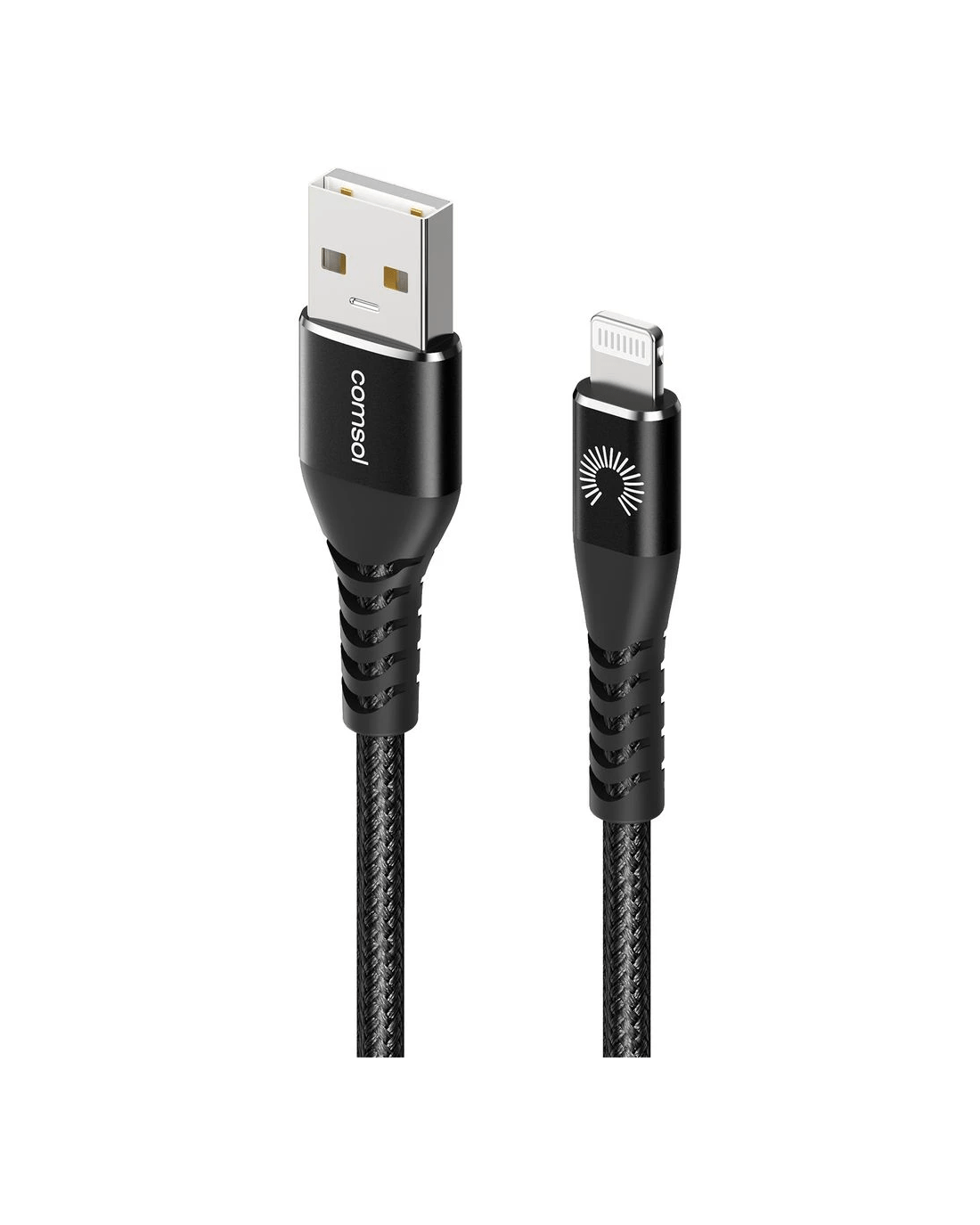 This Comsol USB-A to Lightning MFi Cable is a great way to connect, charge and sync your smartphone. Simply connect to your device with the Lightning head and plug the USB head into your wall charger or computer. The use of kevlar keeps this cable heat-resistant and protected for long-term use.