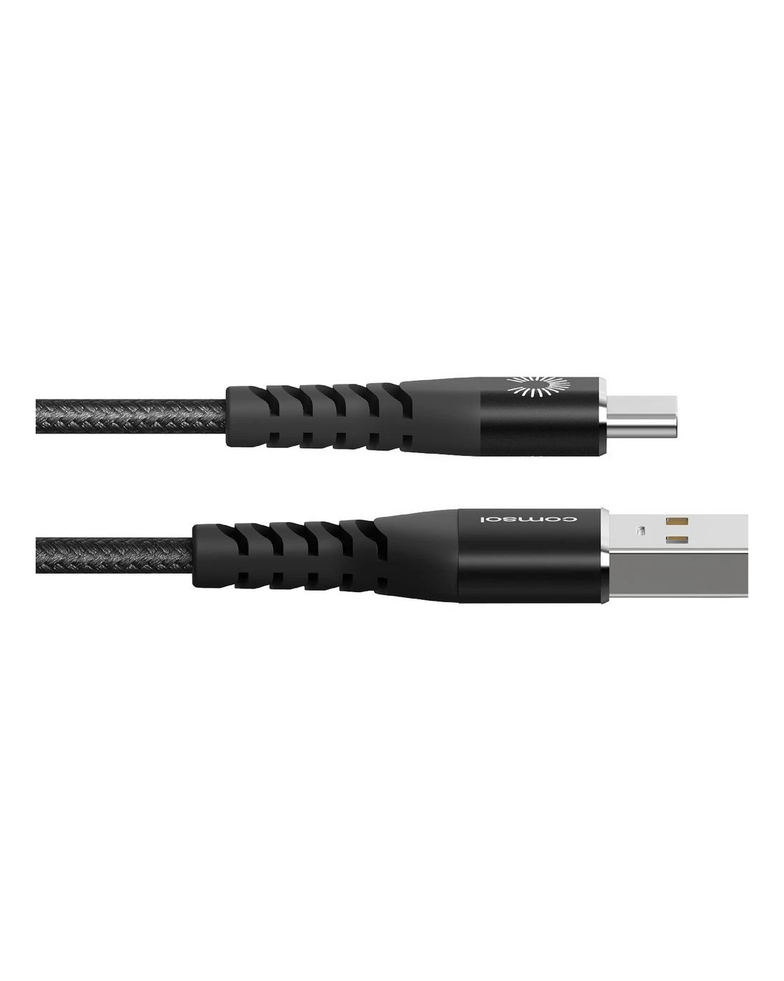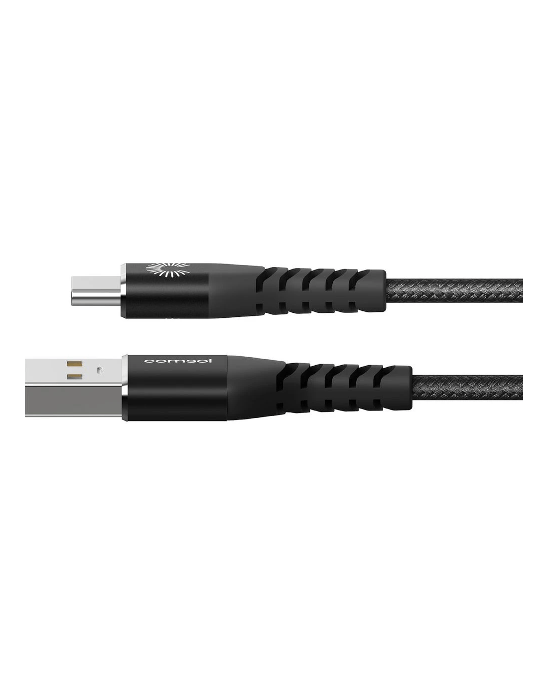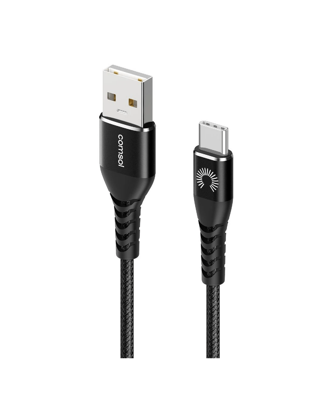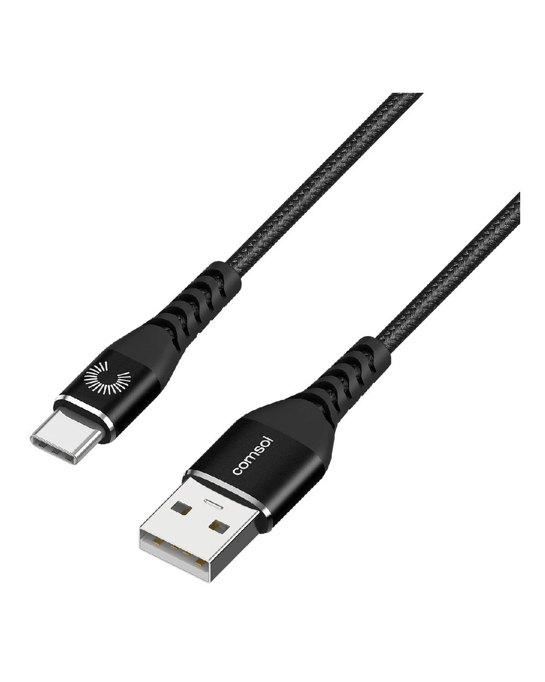 This Comsol USB-C to USB-A Cable is a handy option for connecting and charging your devices. It features a male USB-C head at one end and a male USB-A head at the other end. This cable has kevlar material that is heat-resistant and contributes to long-term protected use.