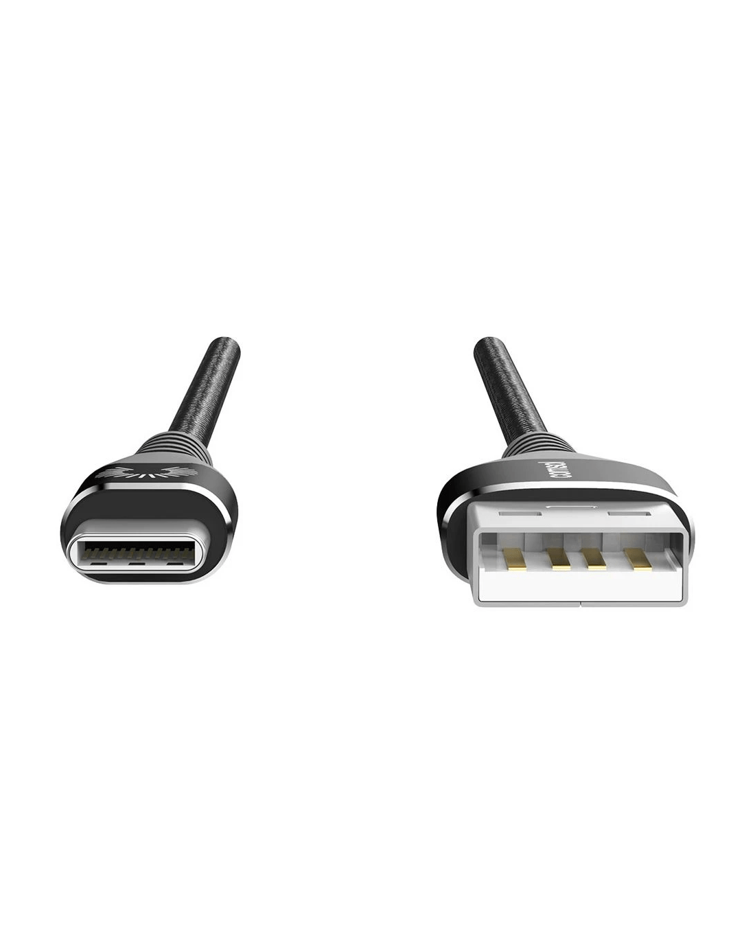 - It features a male USB-C head at one end and a male USB-A head at the other end.