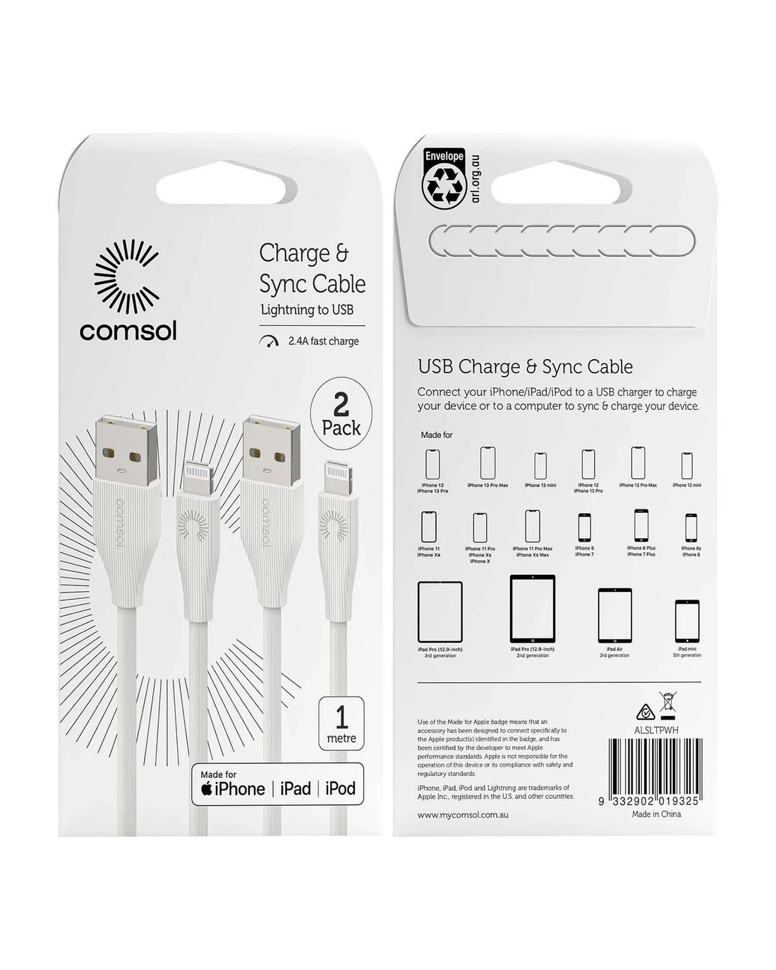Sold by OfficeworksComsol Lightning to USB-A MFi Cables 1m White 2 Pack