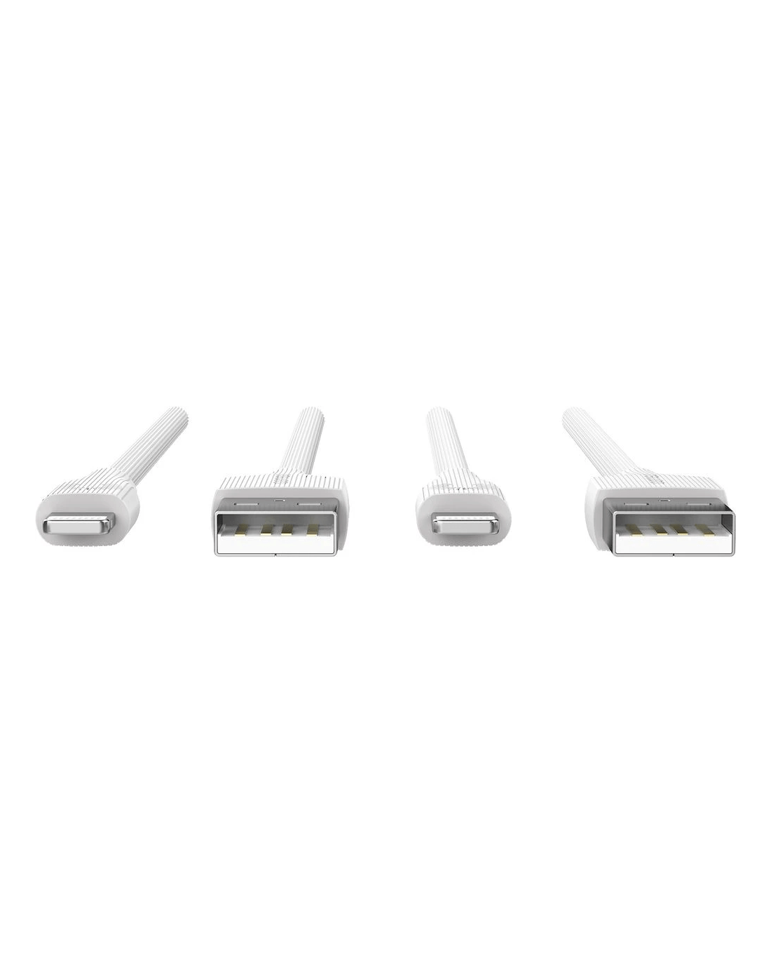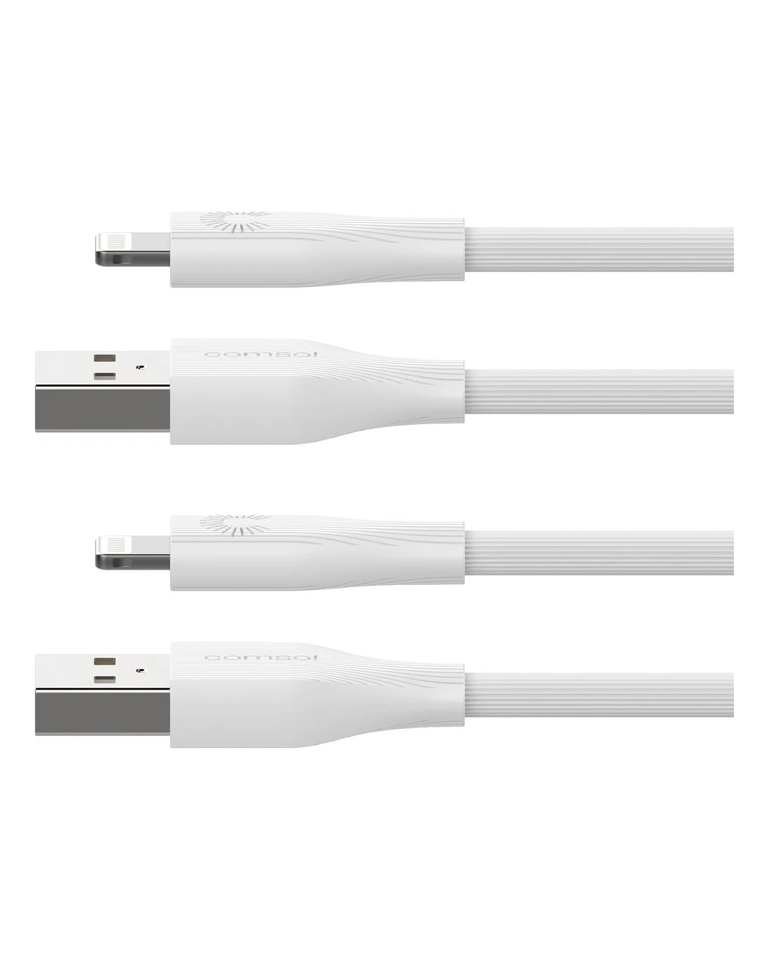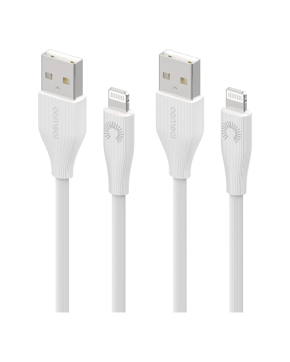- The cables have a male USB-A connector on one end and a male Lightning connector on the other.