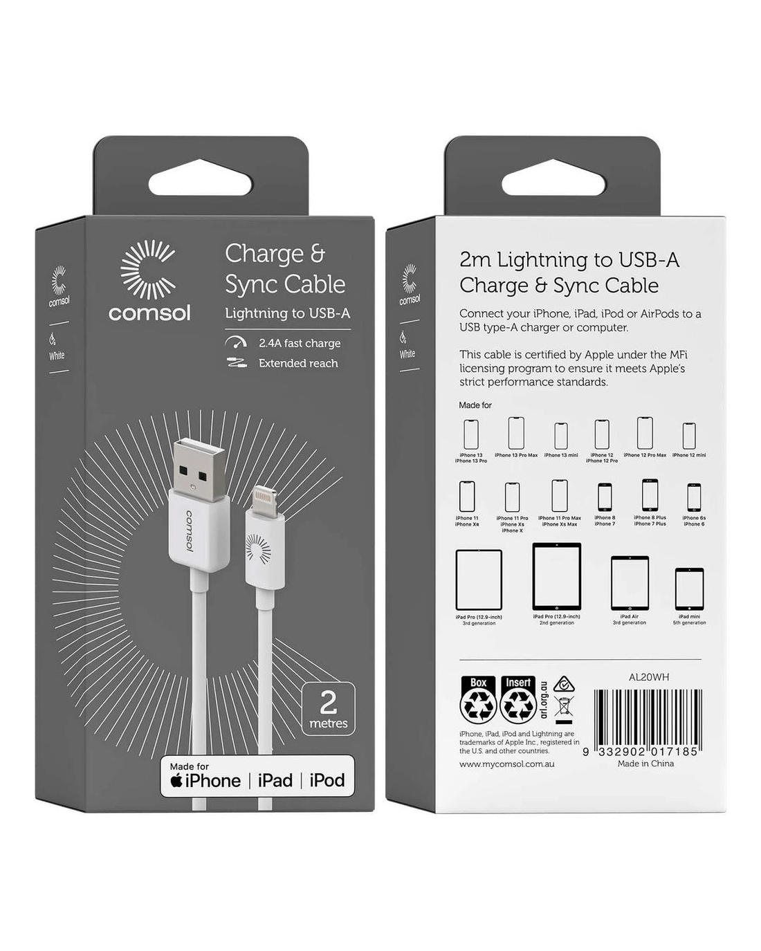 Sold by OfficeworksComsol Lightning to USB Cable 2m White