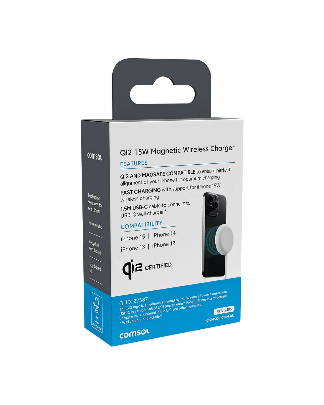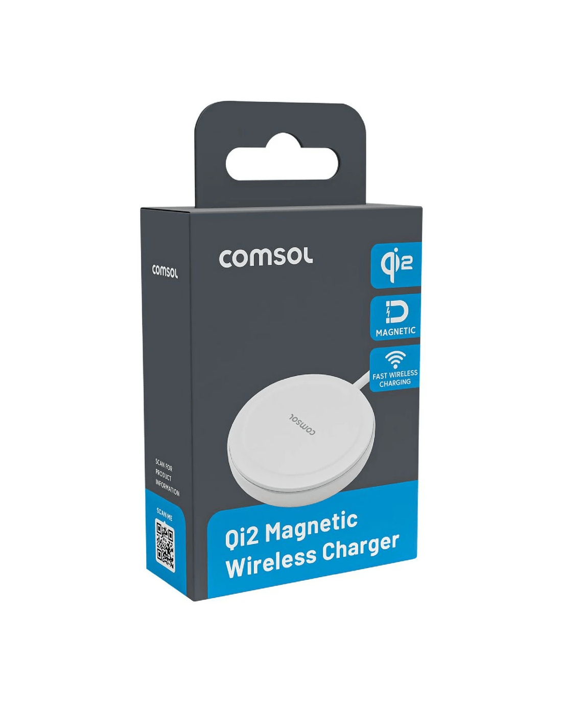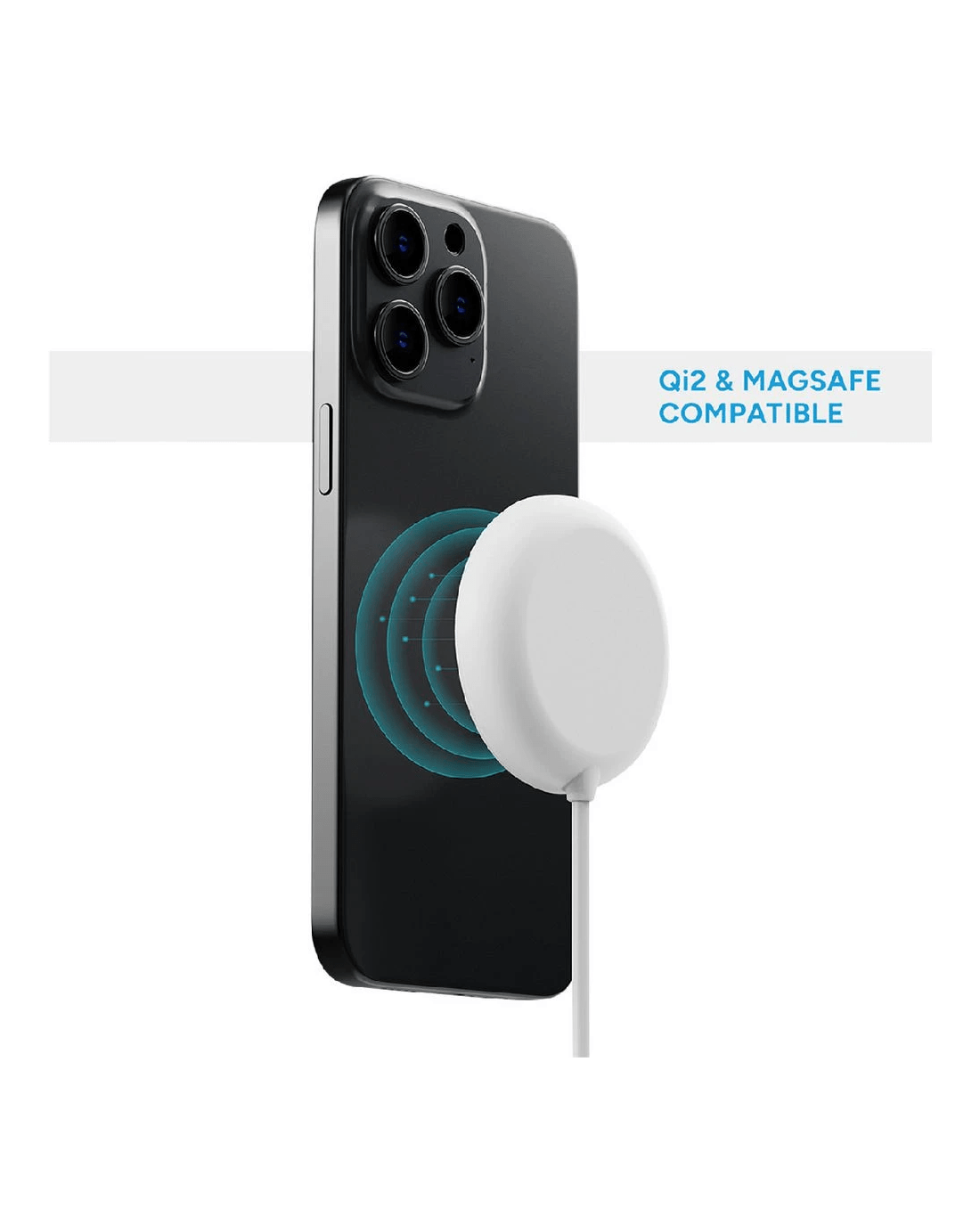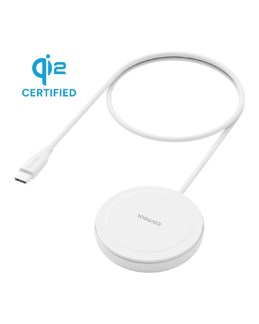 This Comsol Qi2 Magnetic Charging Pad is great for wirelessly charging your MagSafe and Qi2 compatible devices. Its slimline design attaches neatly to the back of your device and the stylish white colourway is designed to match your existing cables and accessories.