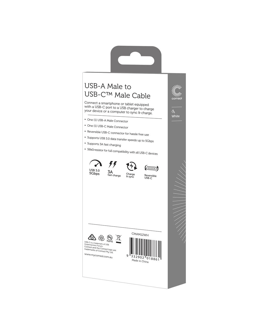 Sold by OfficeworksComsol USB-A to USB-C USB 3.0 Cable 1.2m White