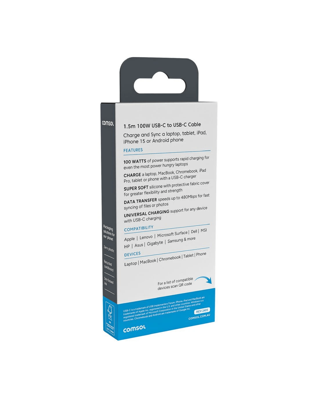Comsol USB-C Cable 100W 1.5m White