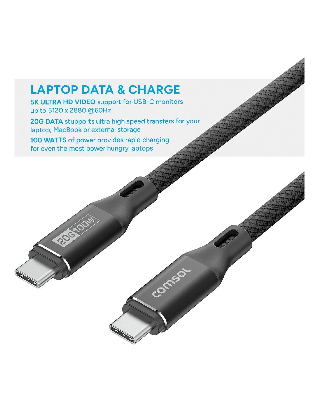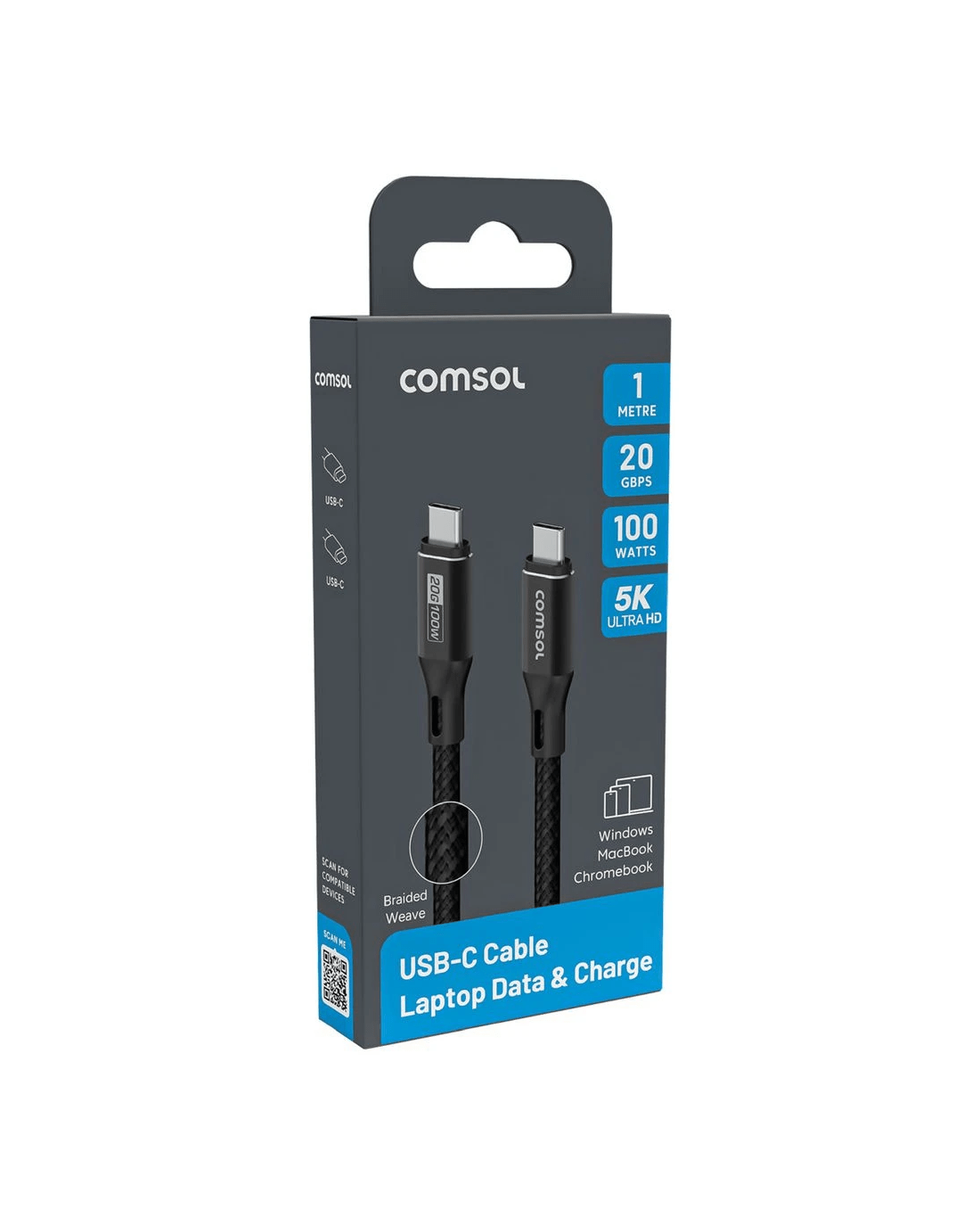This Comsol USB-C Cable is a handy addition to your work or home office setup. It can be used to charge your devices, but also supports a data transfer speed of 20Gbps, so you can quickly exchange files and programs, At a 1 m length, it's easy to slot in your bag and take on the go.
