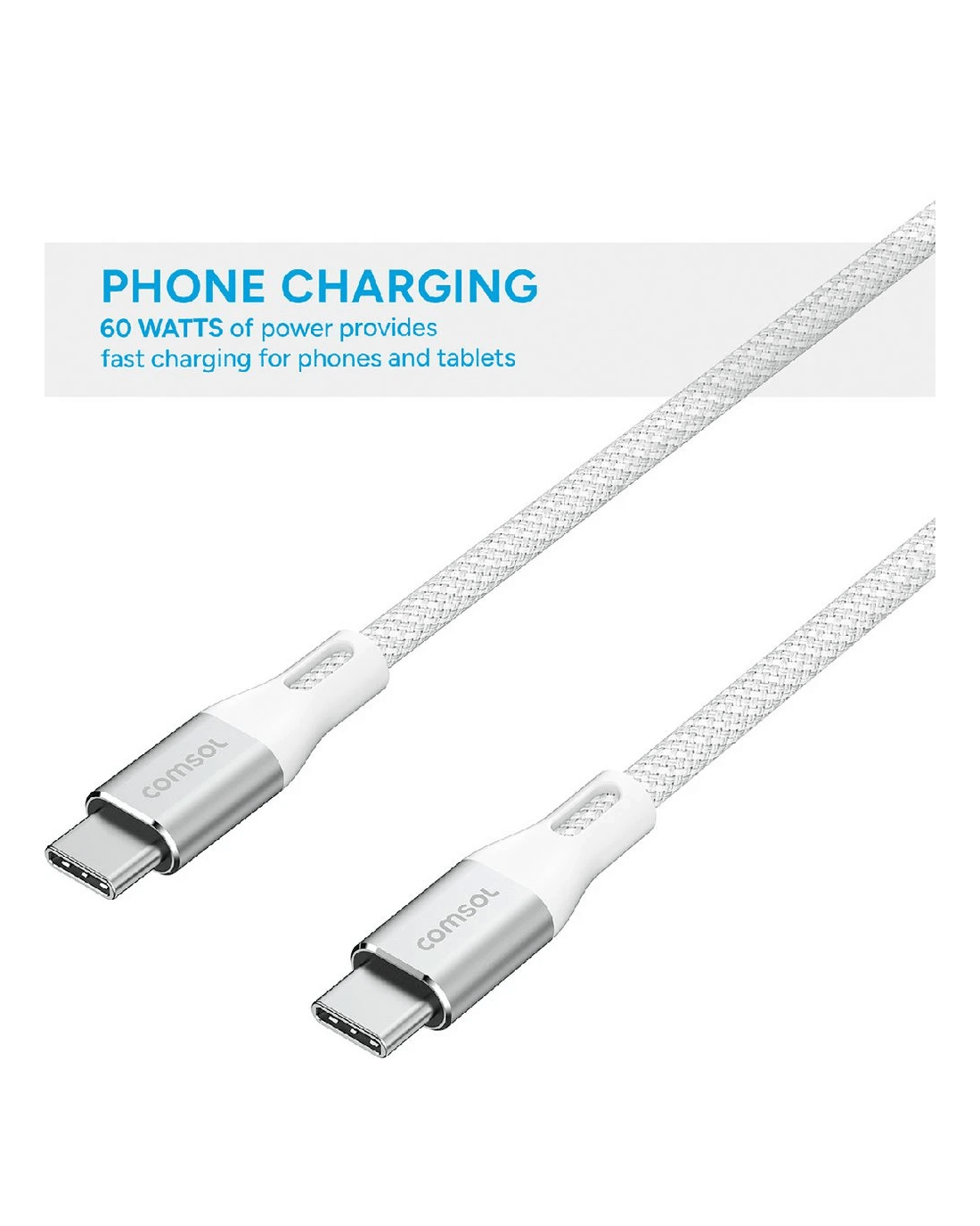 Power up your devices using this Comsol USB-C cable. It has a data transfer speeds of 480 Mbps for file exchanges, and is 2m in size, making it great for both your setup and taking on the go.