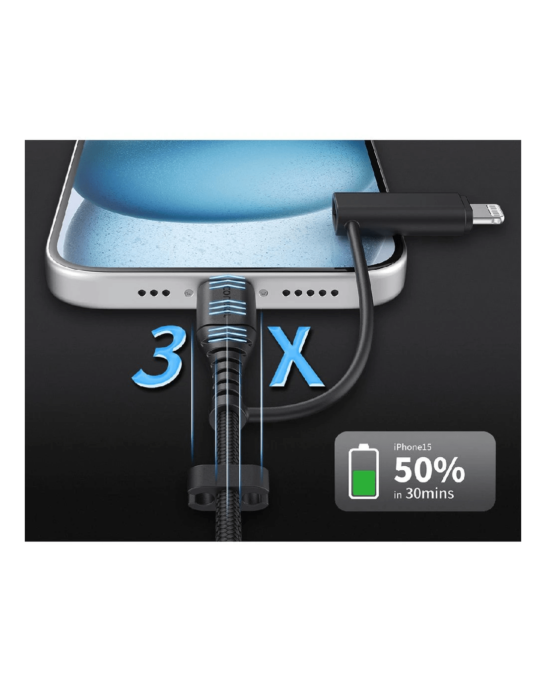 - Fast charge an iPhone 8 or later from 0 to 50% in 30 minutes when connected to a USB-C wall charger.