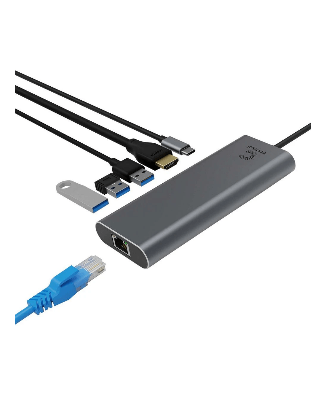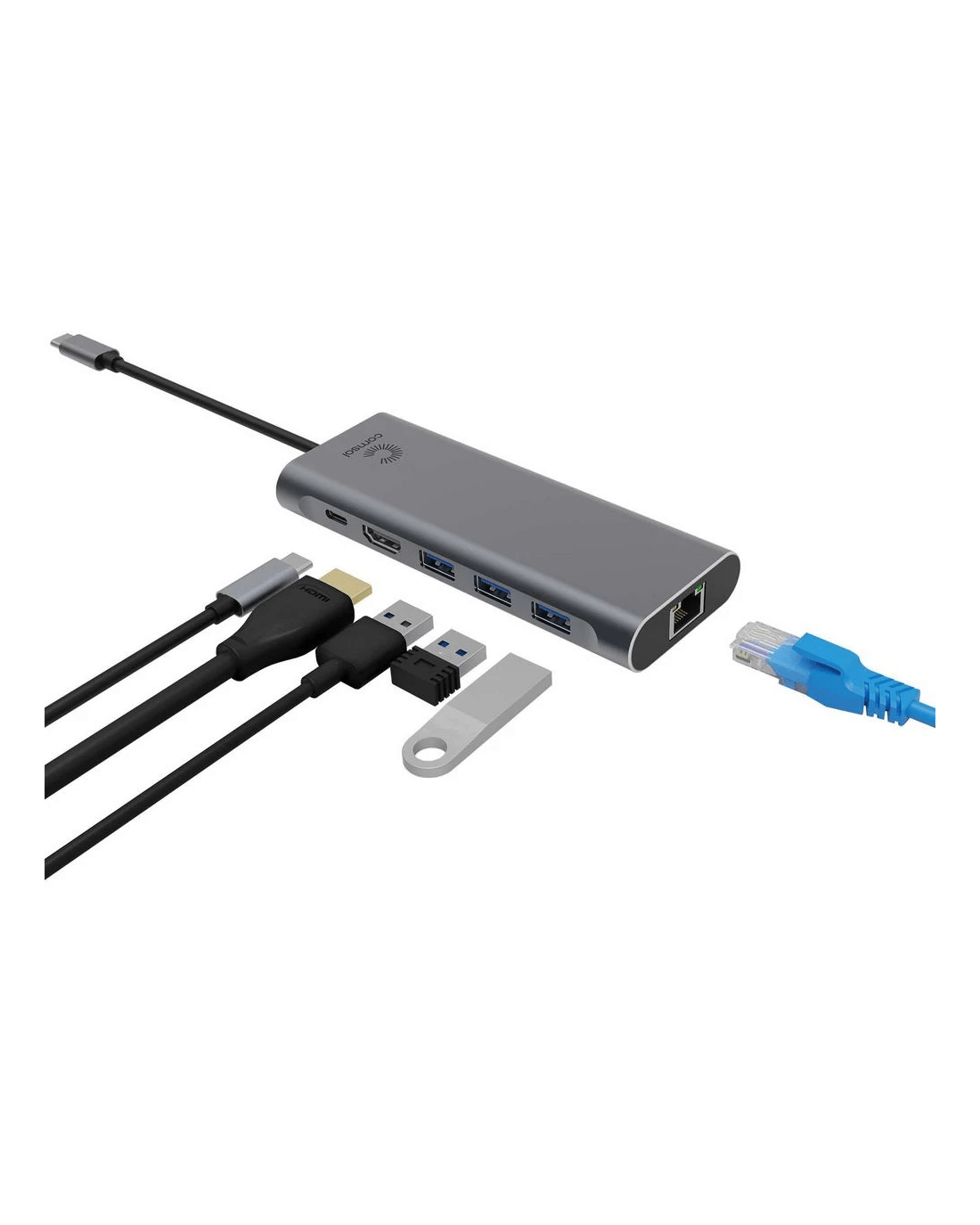 Comsol USB-C HDMI Multiport Adaptor allows you to connect a MacBook, Windows laptop or Chromebook with a USB-C port to a HDMI display to increase your productivity. With this adaptor you can connect a monitor, a keyboard & mouse, USB storage devices and other USB peripherals all via a single USB-C connection. It supports mirror or extended desktop mode for macOS, Windows and chromeOS, and features a USB-C female port for up to 90W of power pass through.