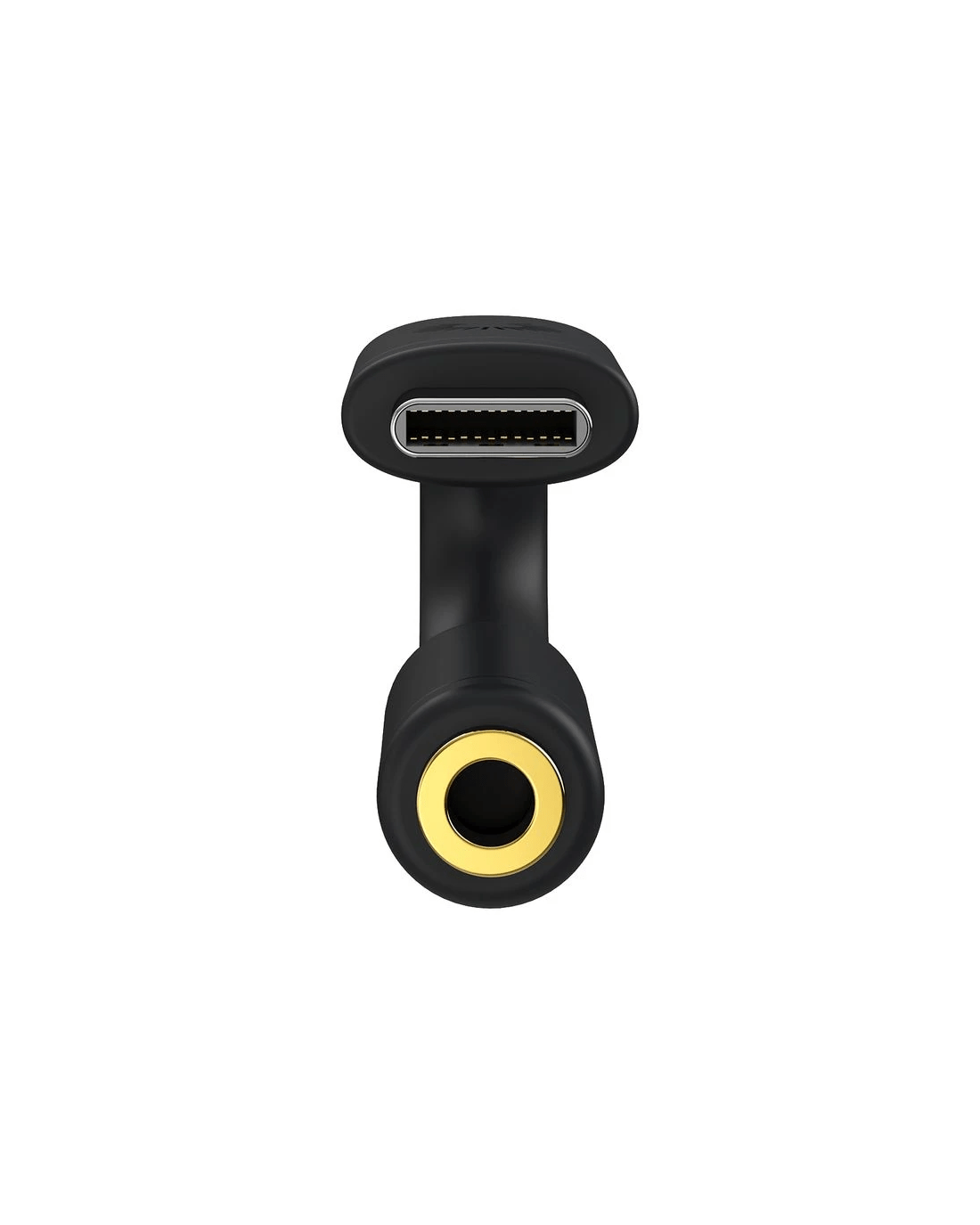 - This male-to-female cord features a USB-C port on one side and a 3.5 mm jack on the other.