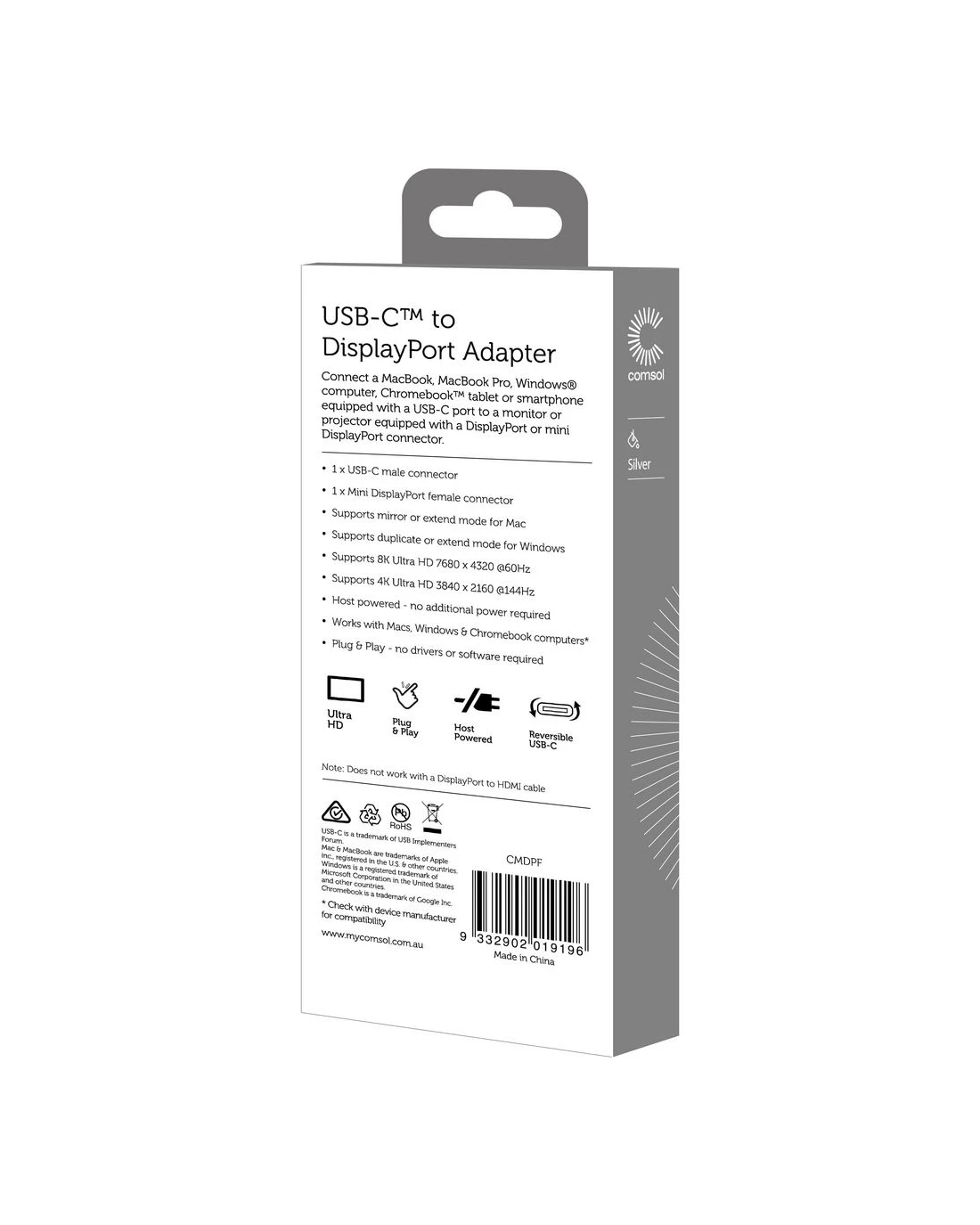 Sold by OfficeworksComsol USB-C to DisplayPort 8K Adapter